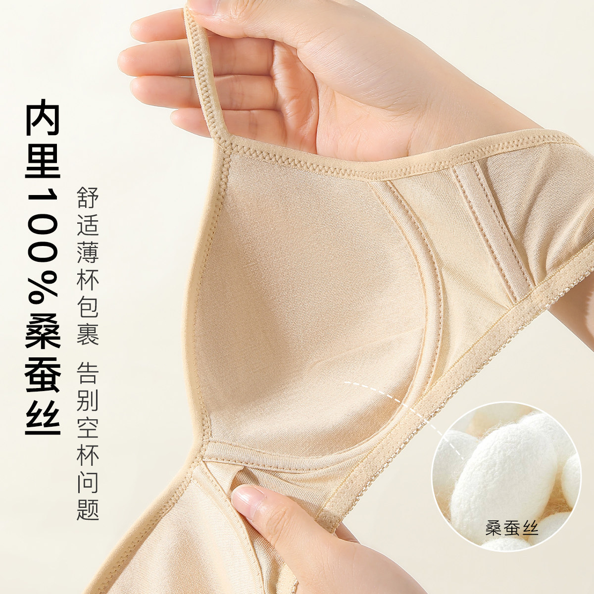 梦芭蒂桑蚕丝真丝内衣女养肤粉底液隐形聚拢无钢圈舒适薄杯文胸