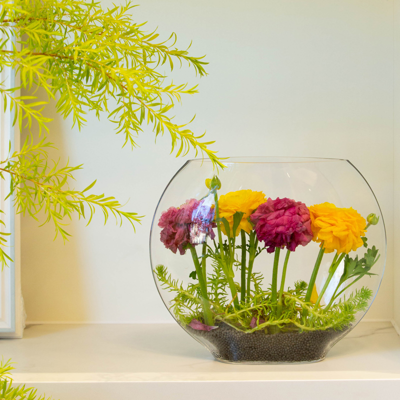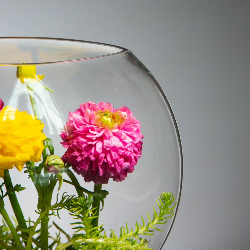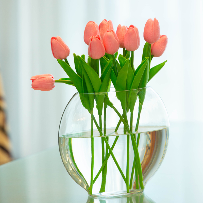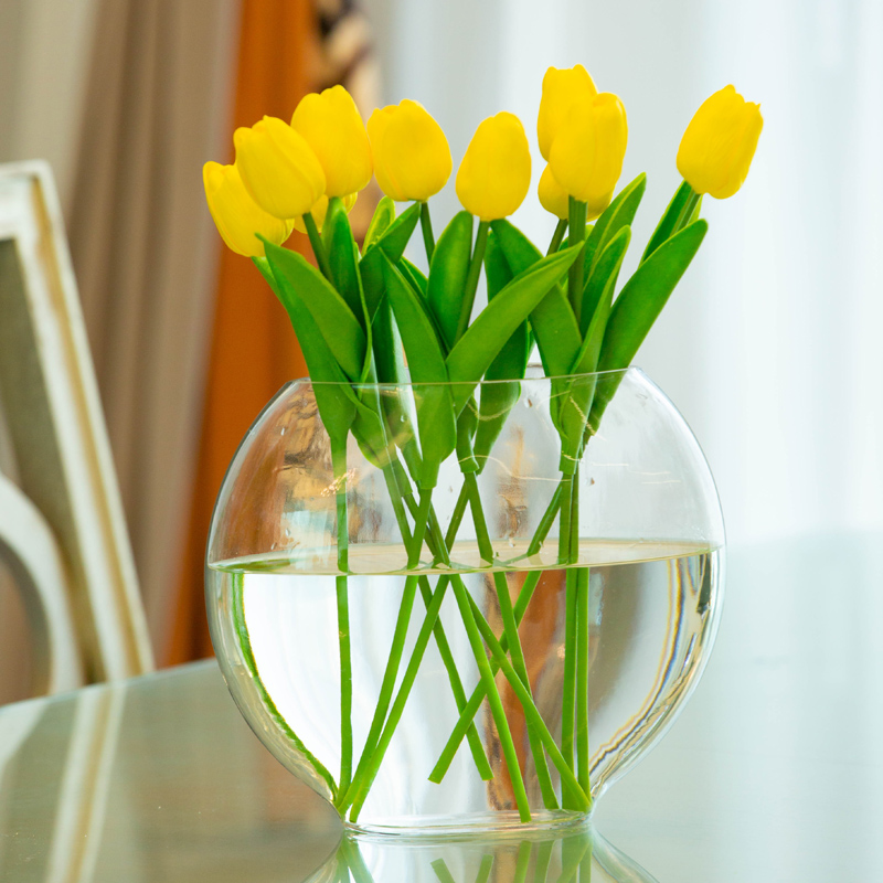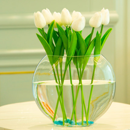 简约现代扁口玻璃花瓶客厅办公桌面水培透明玻璃花盆装饰摆件