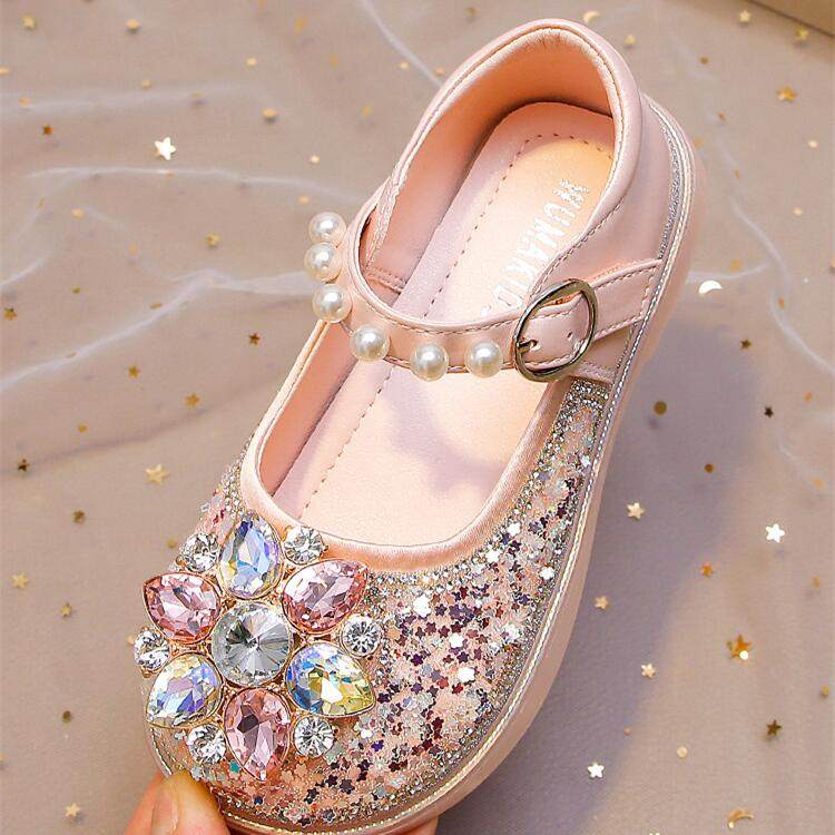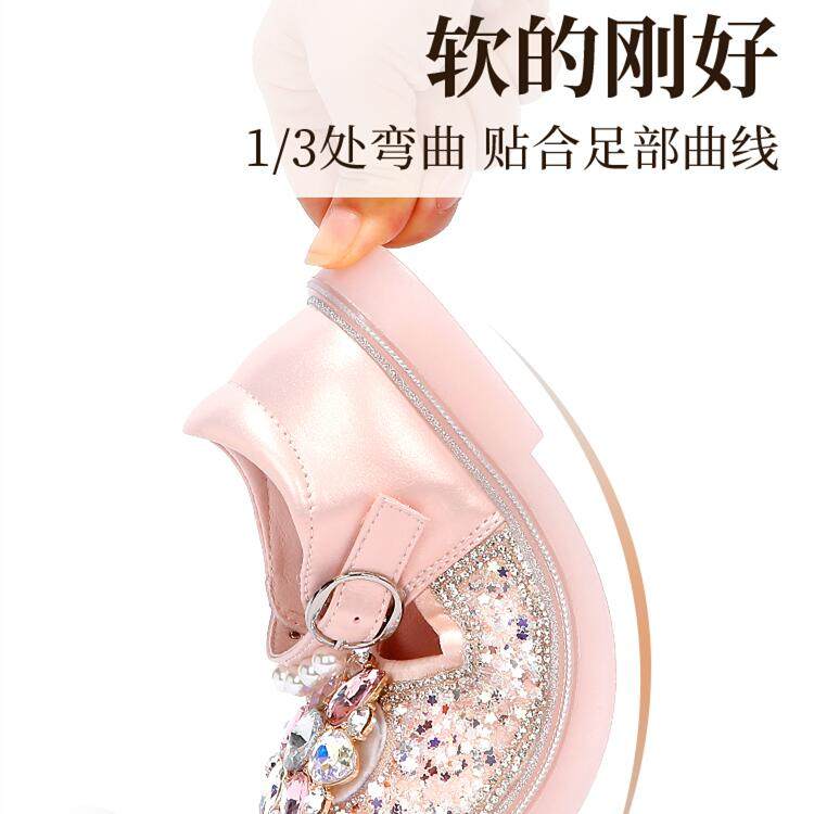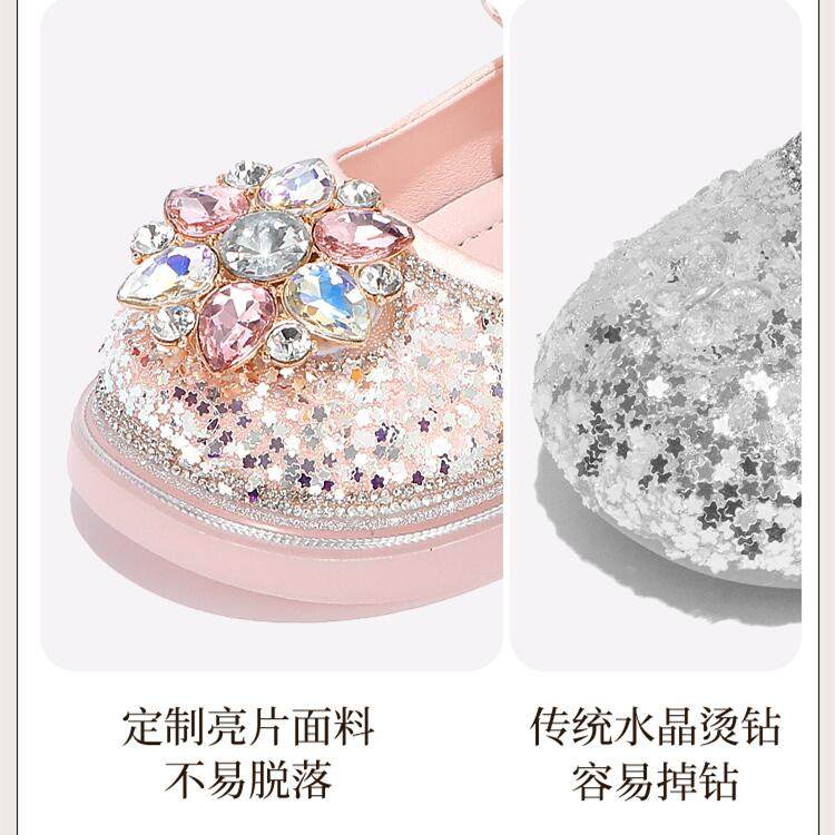 女童公主鞋2025新款春秋软底真皮水晶鞋儿童小皮鞋配水钻礼服单鞋