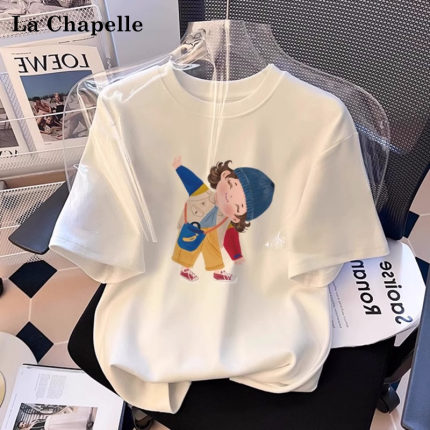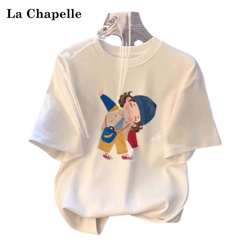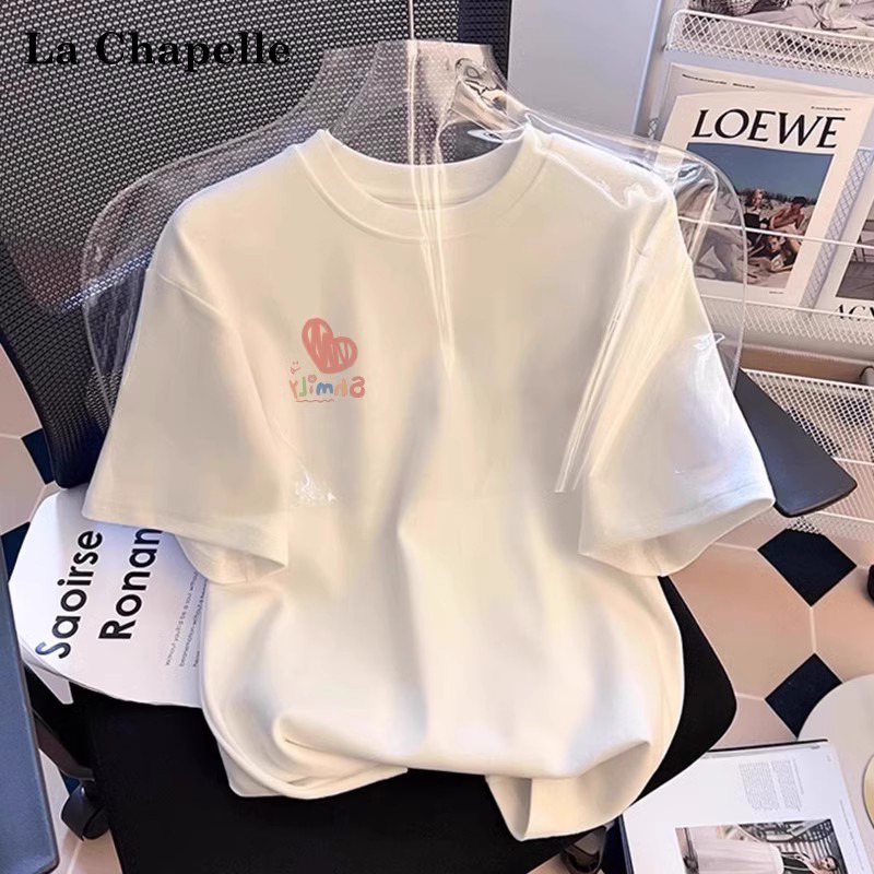 拉夏贝尔白色圆领纯棉短袖T恤女夏季新宽松设计感半袖体恤上衣