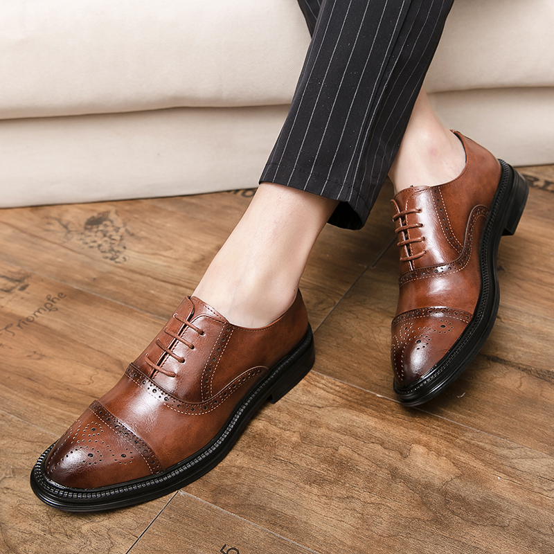 皮鞋男士黑色商务正装休闲英伦韩版西装潮流结婚礼棕色布洛克男鞋