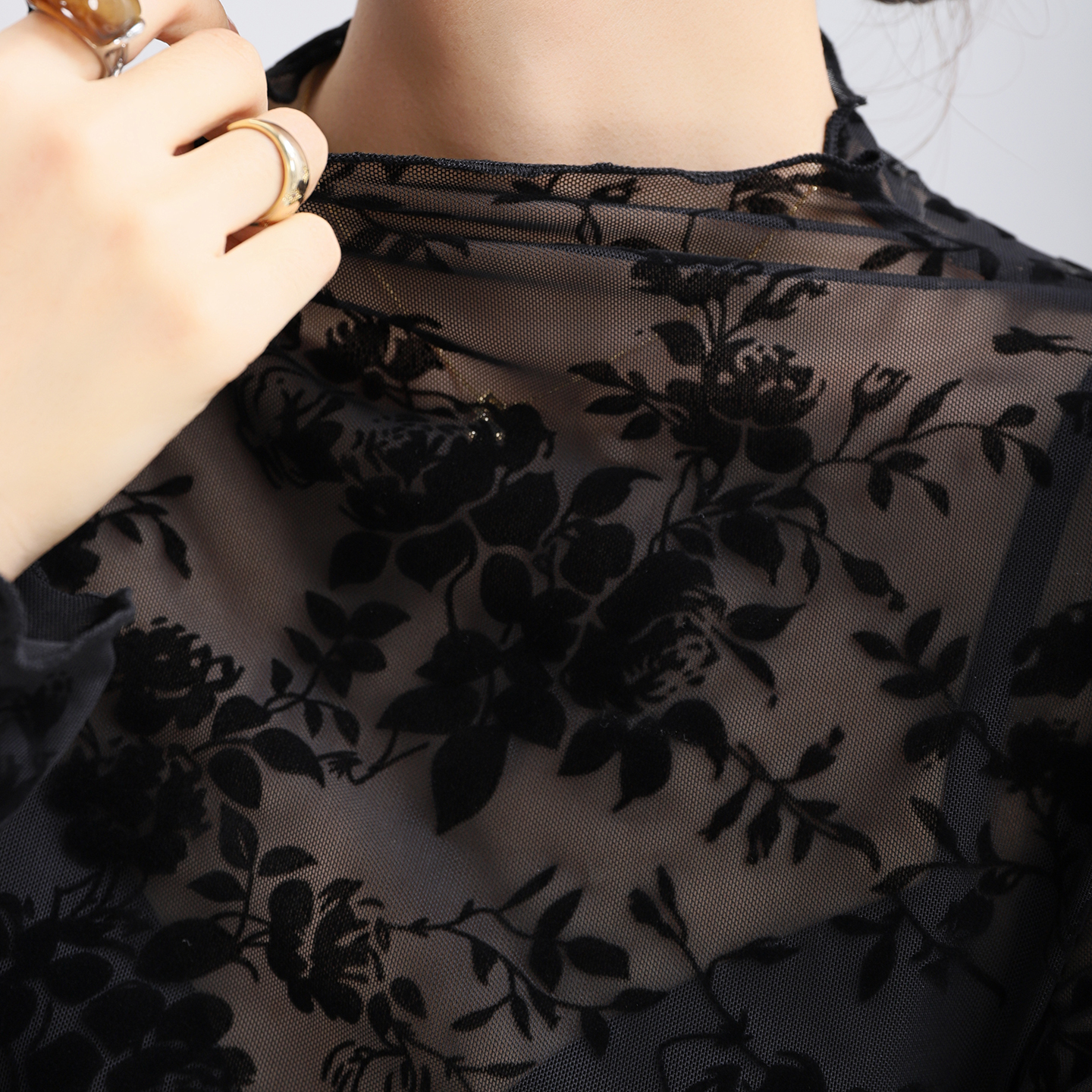 蕾丝打底衫女内搭半高领黑色叠穿高端薄款透明网纱上衣轻奢高级感