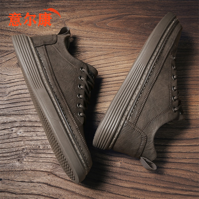 意尔康男鞋2026新款潮流爆款秋冬季皮面加绒加棉男士皮面休闲板鞋