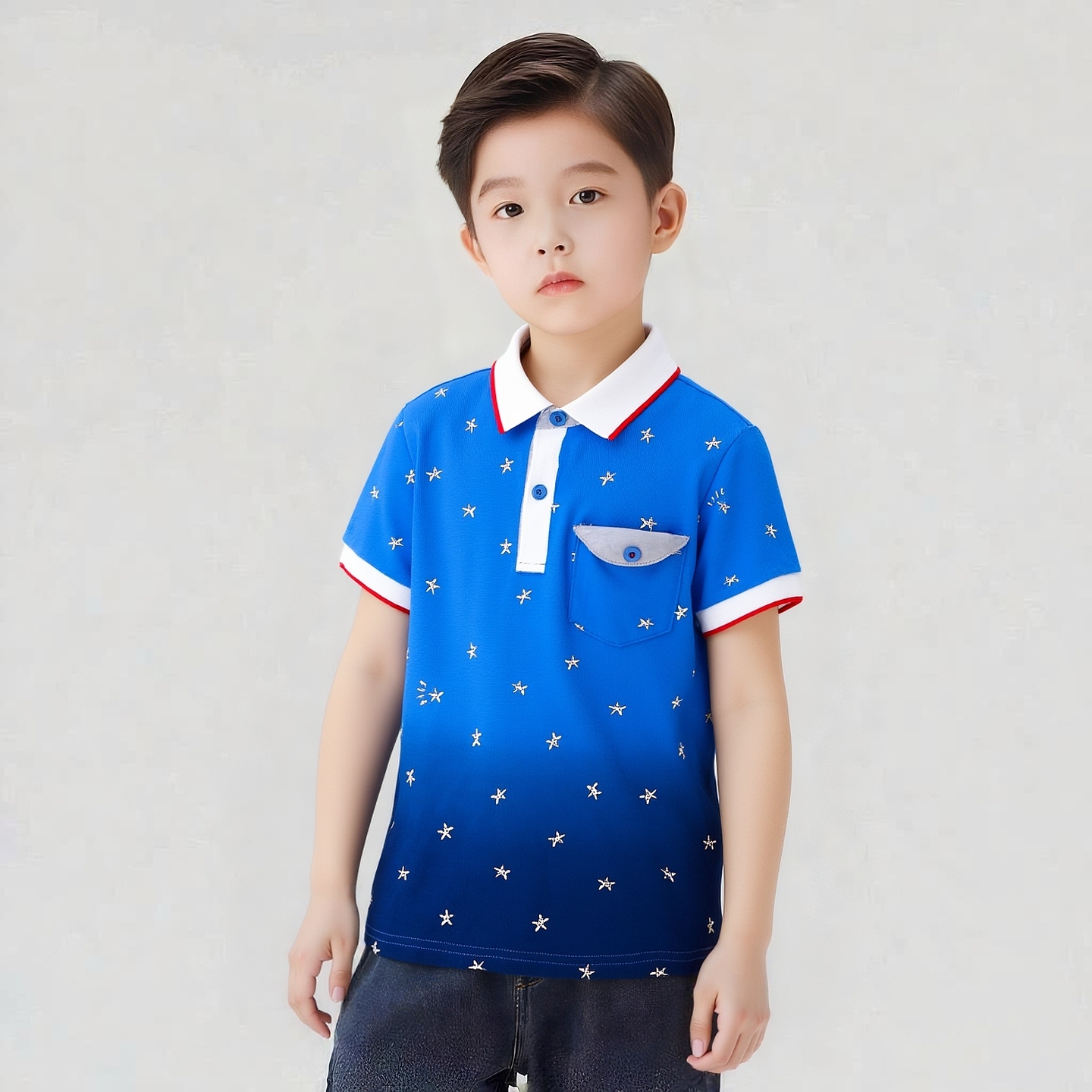 ELLE男童短袖polo衫翻领渐变纯棉