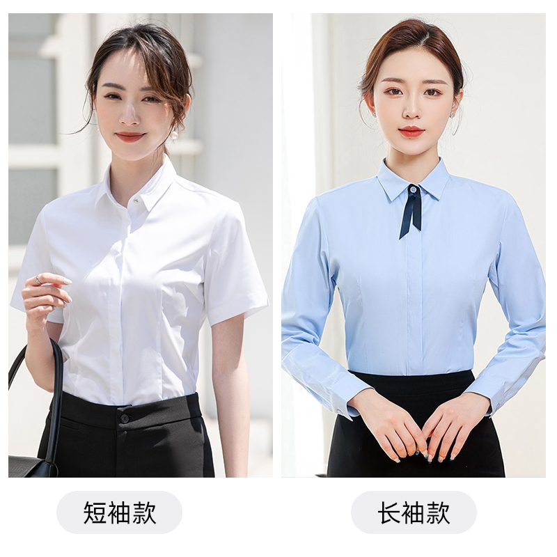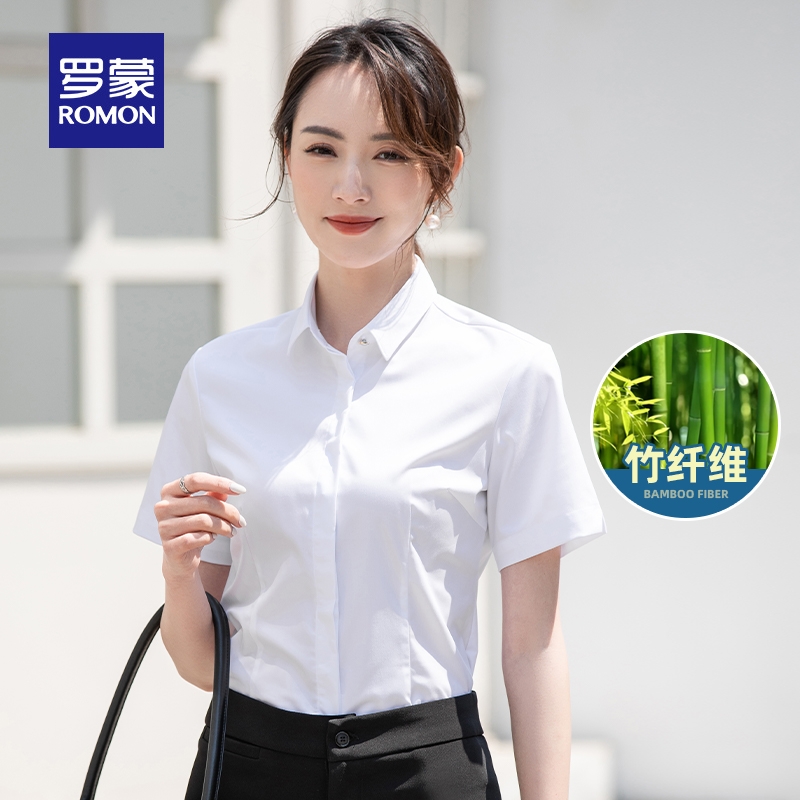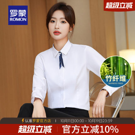 【竹纤维】罗蒙女士长袖白衬衫2025秋季商务职业工装免烫蓝色衬衣
