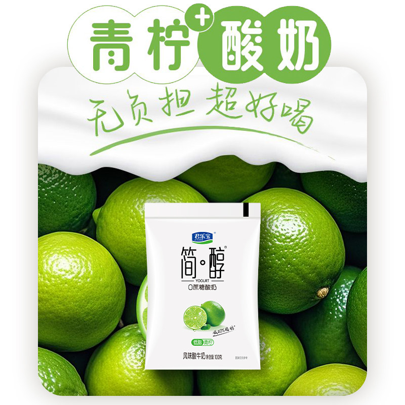 【新品上市】君乐宝简醇0蔗糖酸奶低脂青柠100g袋装风味酸牛奶