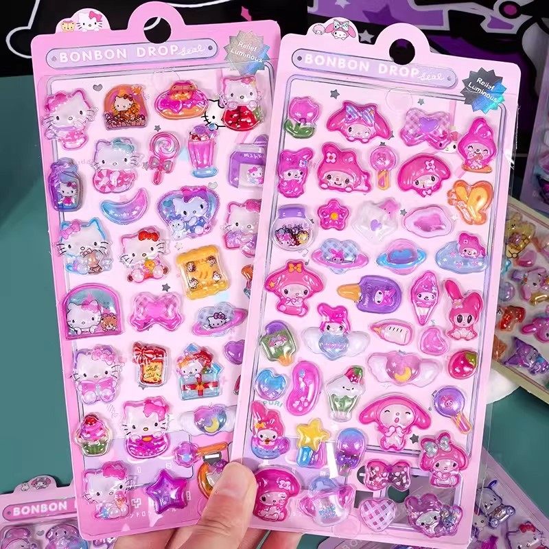 3d立体夜光浮雕贴纸儿童女孩可爱卡通趣味发光水晶宝石装饰贴画