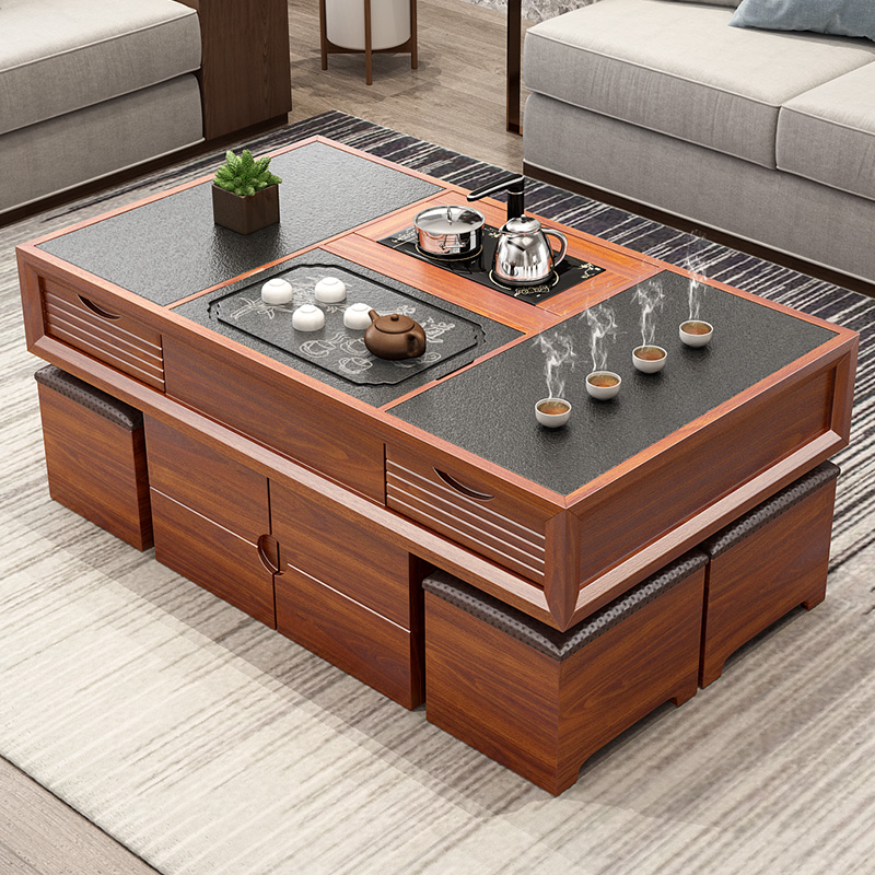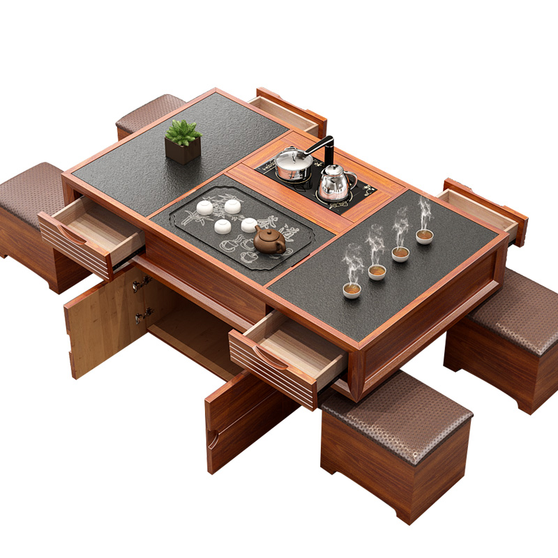 现代简约火烧石茶几多功能功夫茶艺桌大理石桌椅T组合办公中式茶