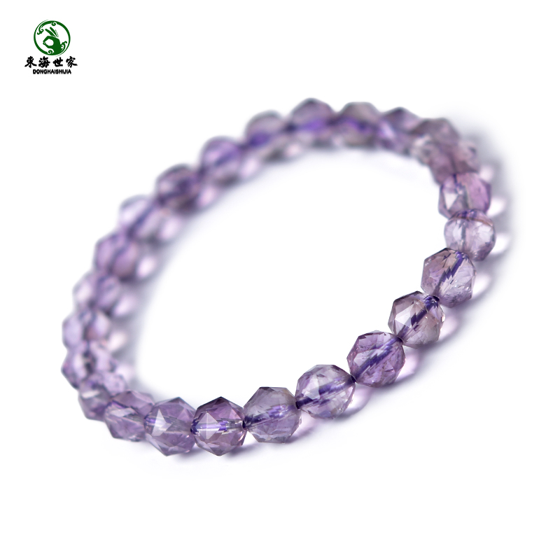 紫水晶手链女东海水晶玛瑙玉髓翡翠宝玉石钻切黄晶散珠子紫晶手串