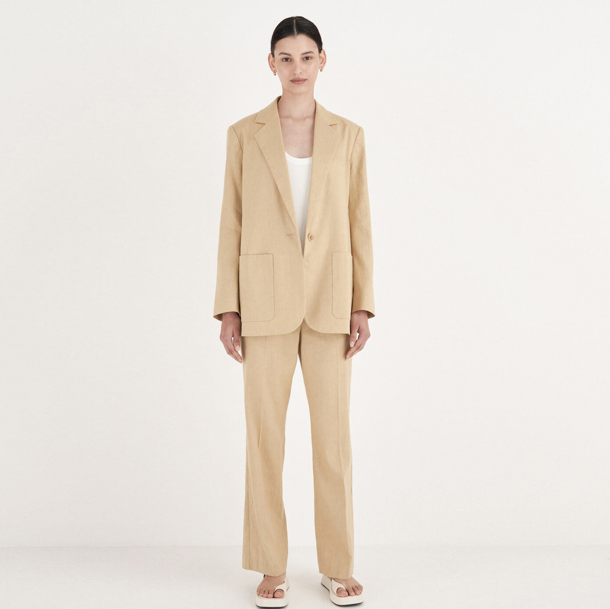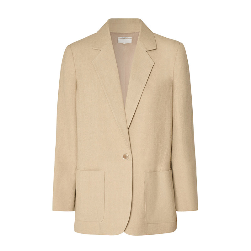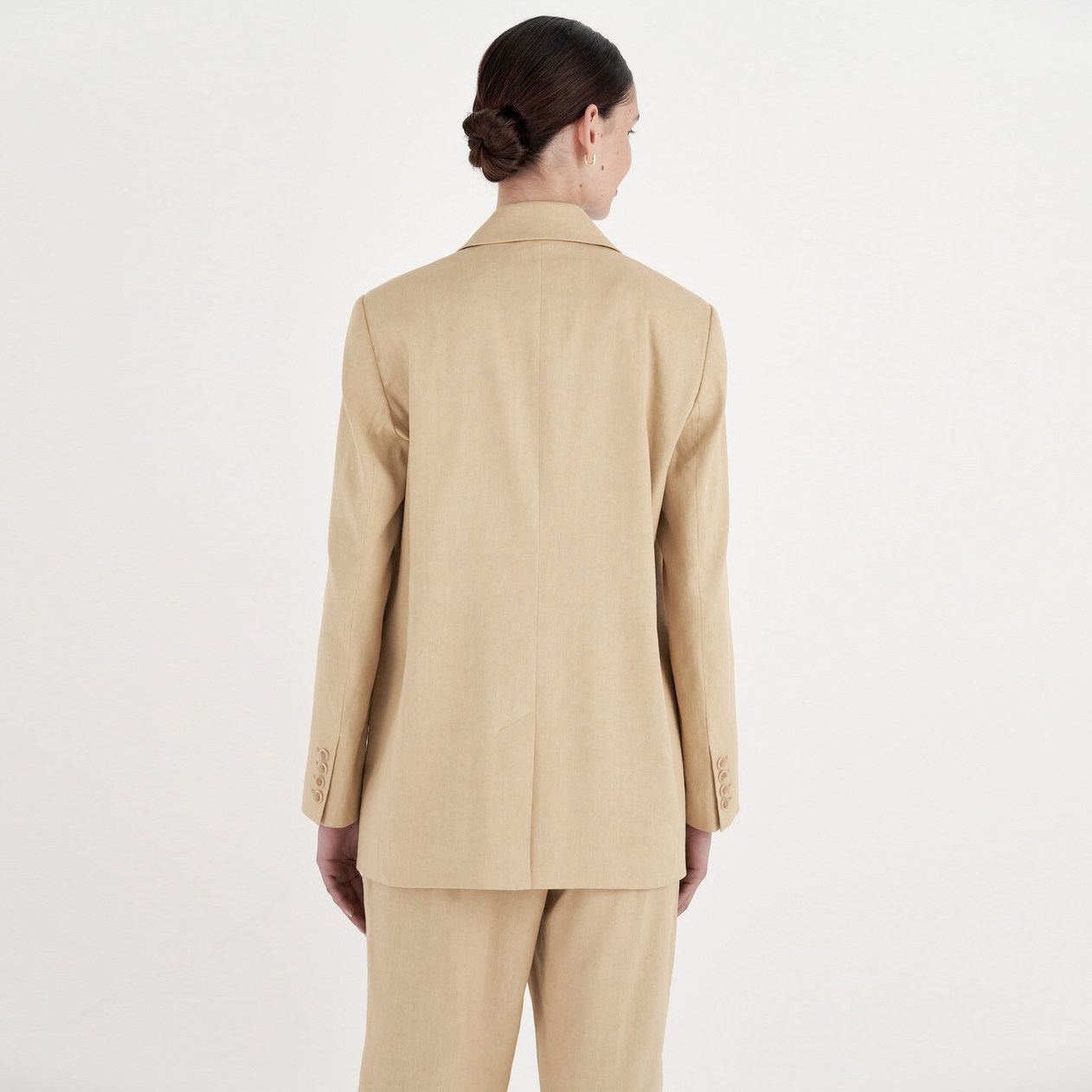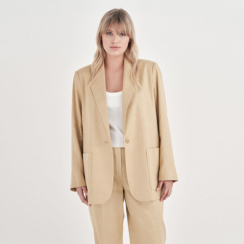 简约极简设计!棉麻西装外套女中长款宽松廓形垫肩西服秋简约纯色