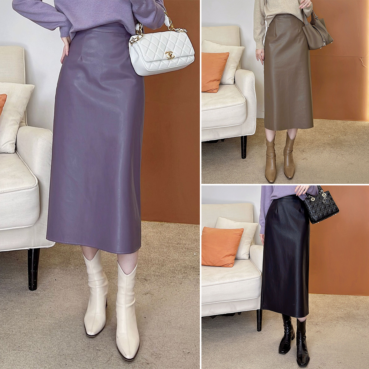 直筒皮裙a字半身裙女秋冬2024新款高腰显瘦pu皮高级感气质包臀裙