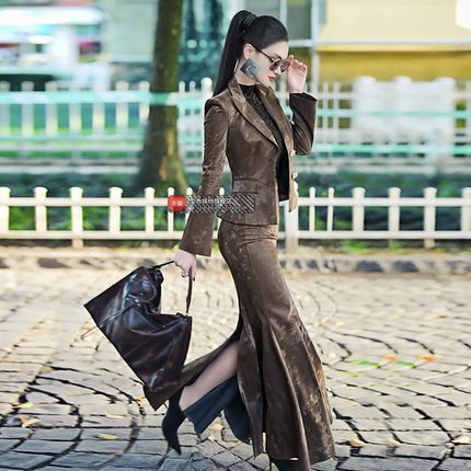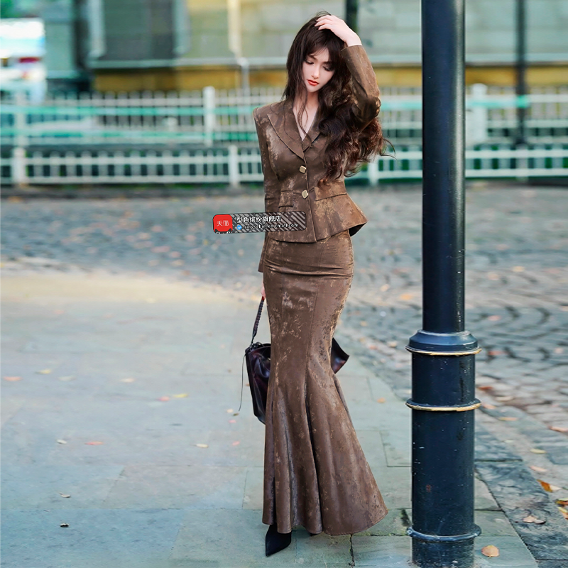 秋季帅气气质干练一整套套装新款小西服包臀鱼尾裙两件套