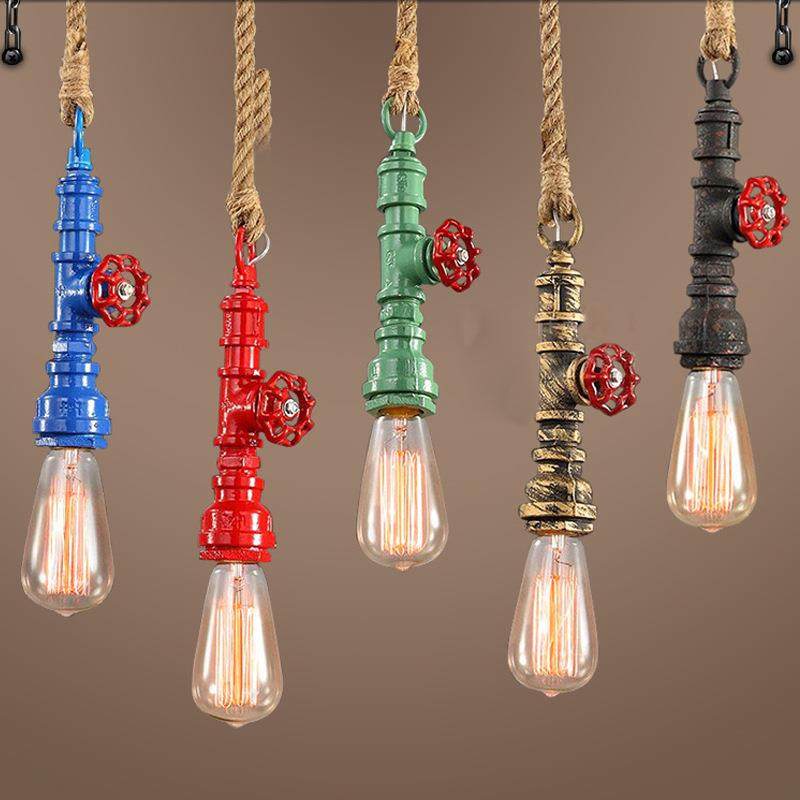 水管麻绳吊灯工业风创意餐厅酒吧台咖啡厅灯具美式复古单头吊灯