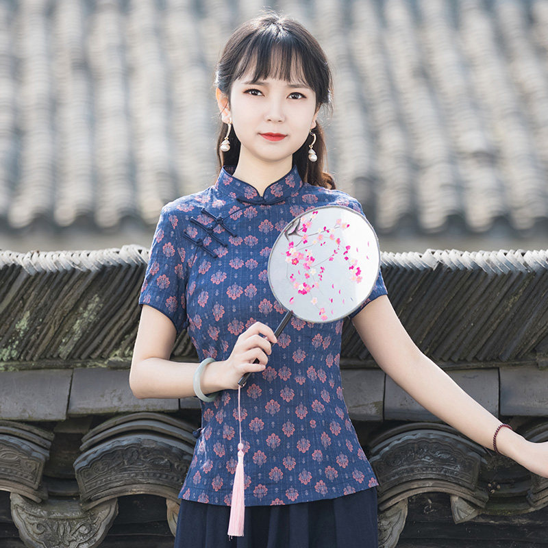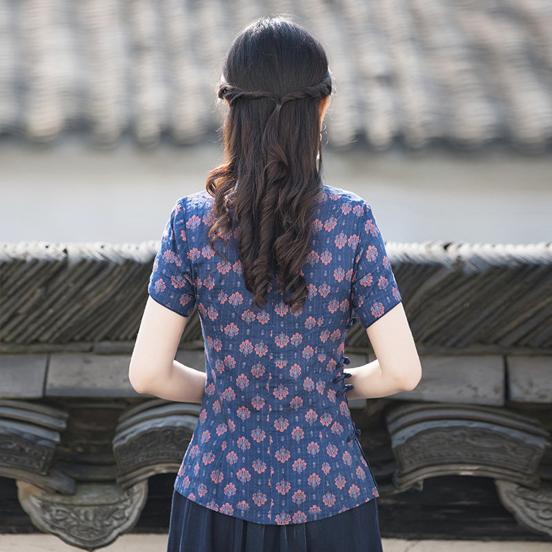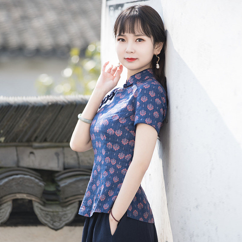 筠雅唐装女中国风改良旗袍上衣2025年夏季新款短袖素衣禅意女装