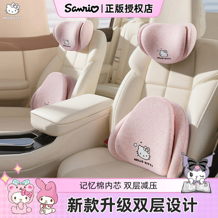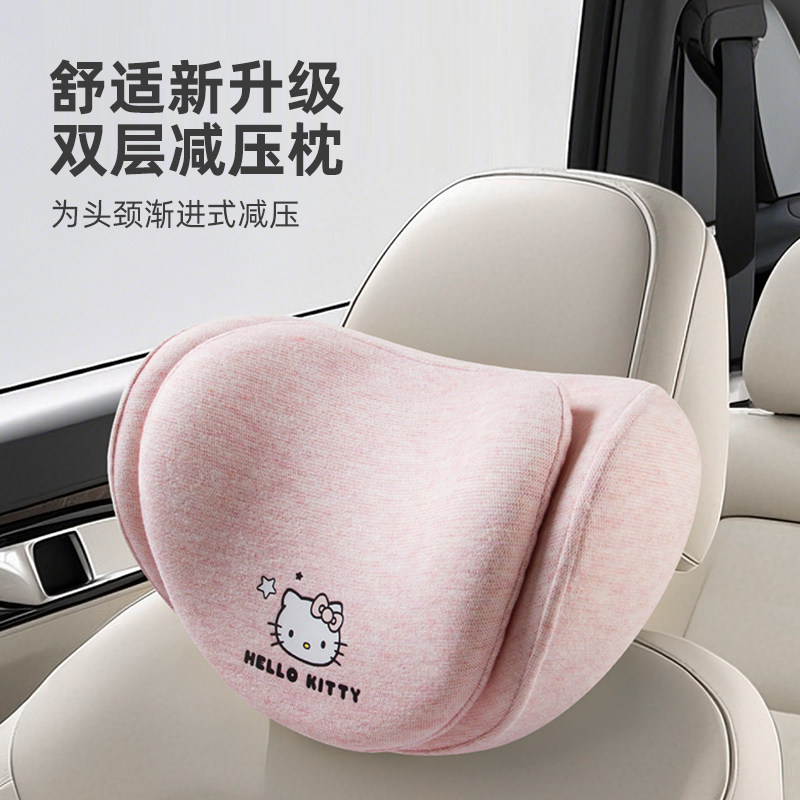 Kitty汽车头枕护颈枕车用靠枕座椅头枕腰靠双层可爱记忆棉2026新