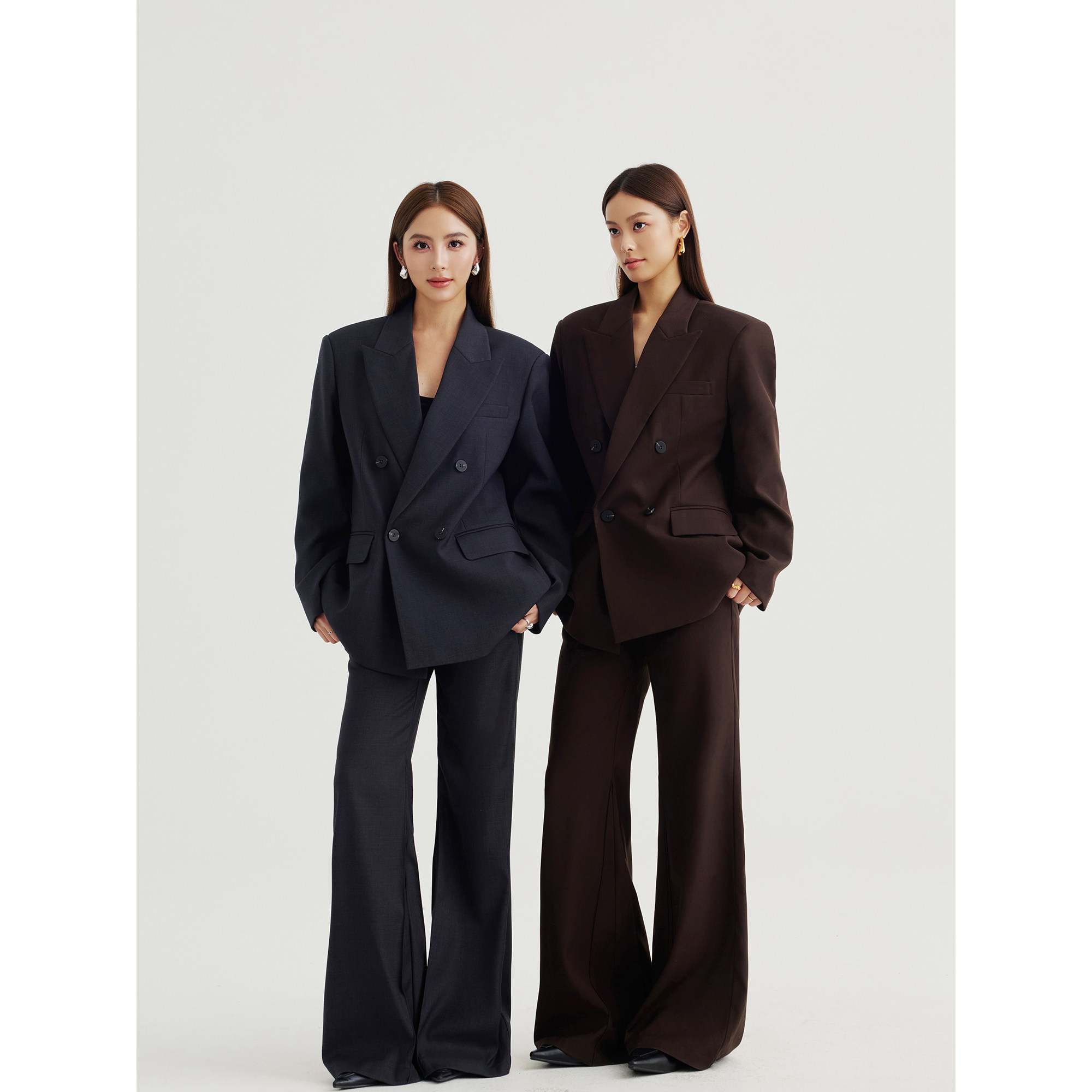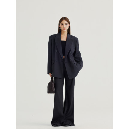 NEVA HU 都市女绅士 西装外套女双排扣高级感西服+喇叭裤西裤套装