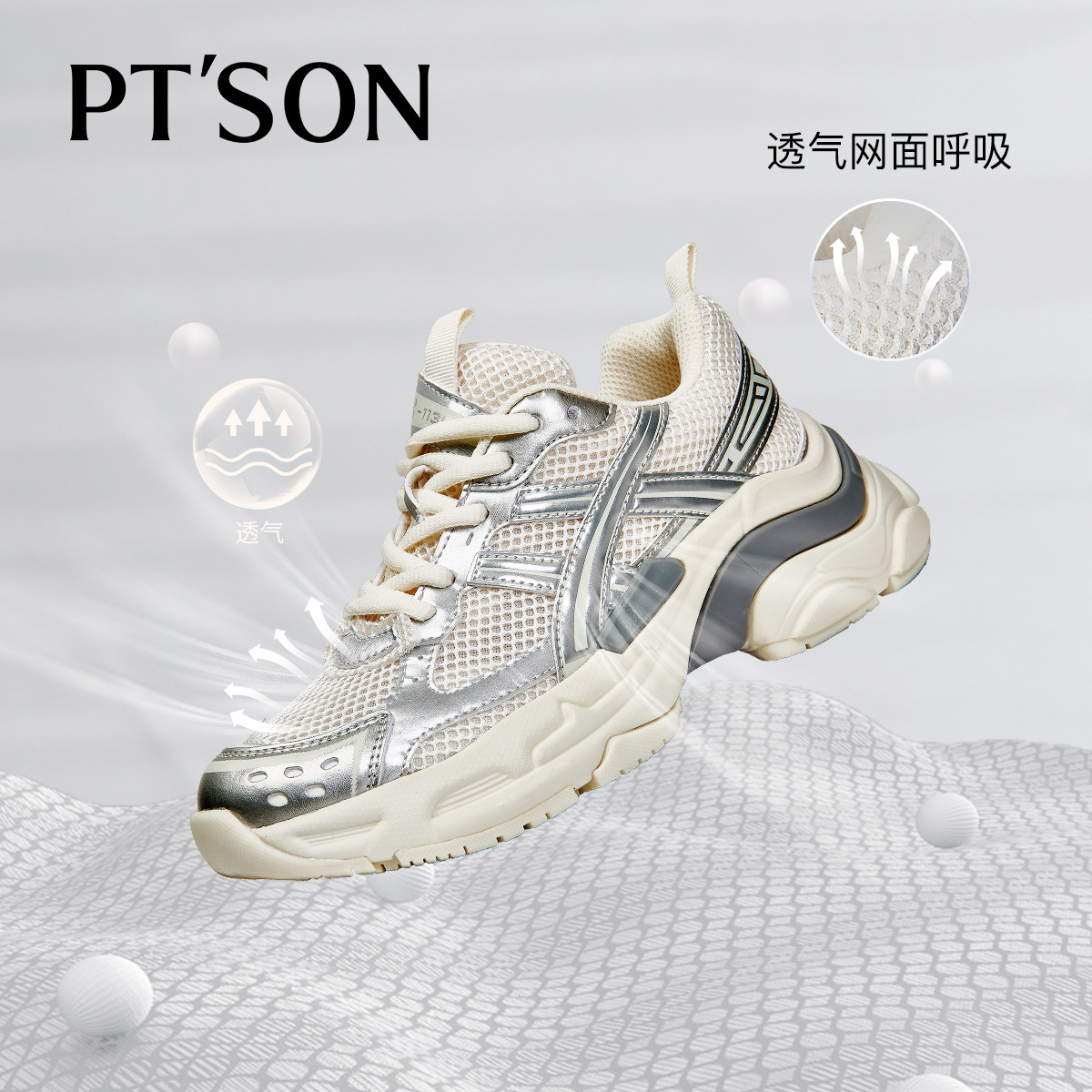 粉粉同款商场同款百田森厚底增高老爹鞋女春季新网面透气跑步鞋