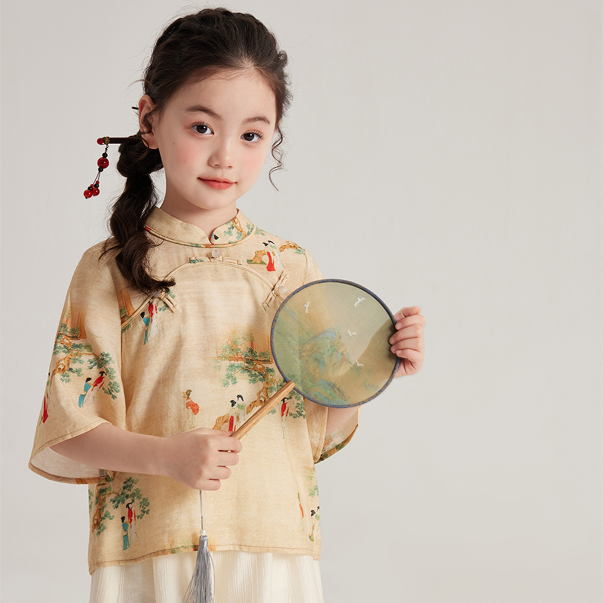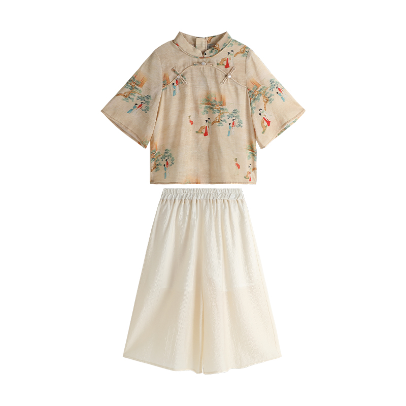 布丁哈鲁童装夏装女童2025夏季新款国风新中式衬衫雪纺裤子套装