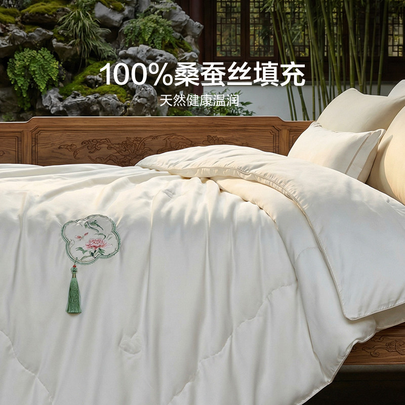 罗莱家纺LOVO全棉100%桑蚕丝被子四季通用春秋被芯子母被夏凉被