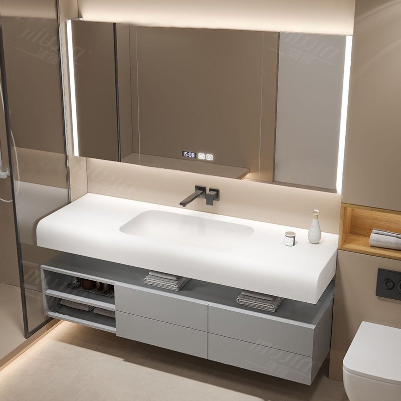 现代简约杜邦可丽耐一体盆浴室柜组合日式卫生间洗漱台洗脸盆卫浴