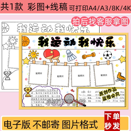 我运动我快乐手抄报模板电子版小学生运动记录小报线稿模版可编辑