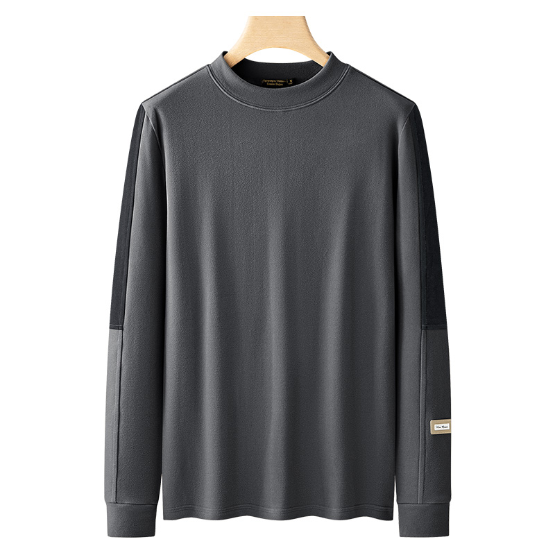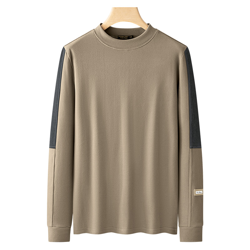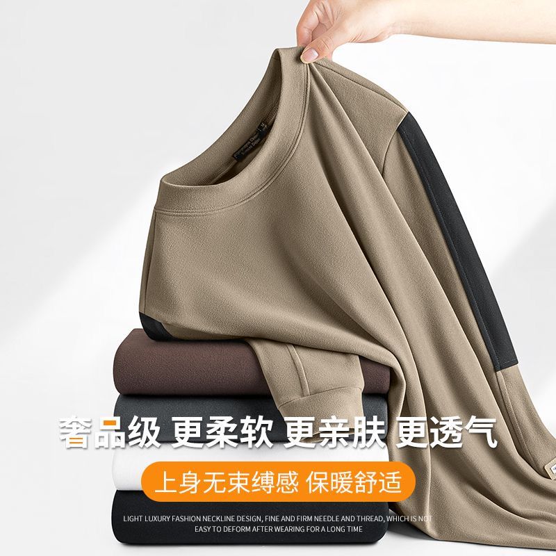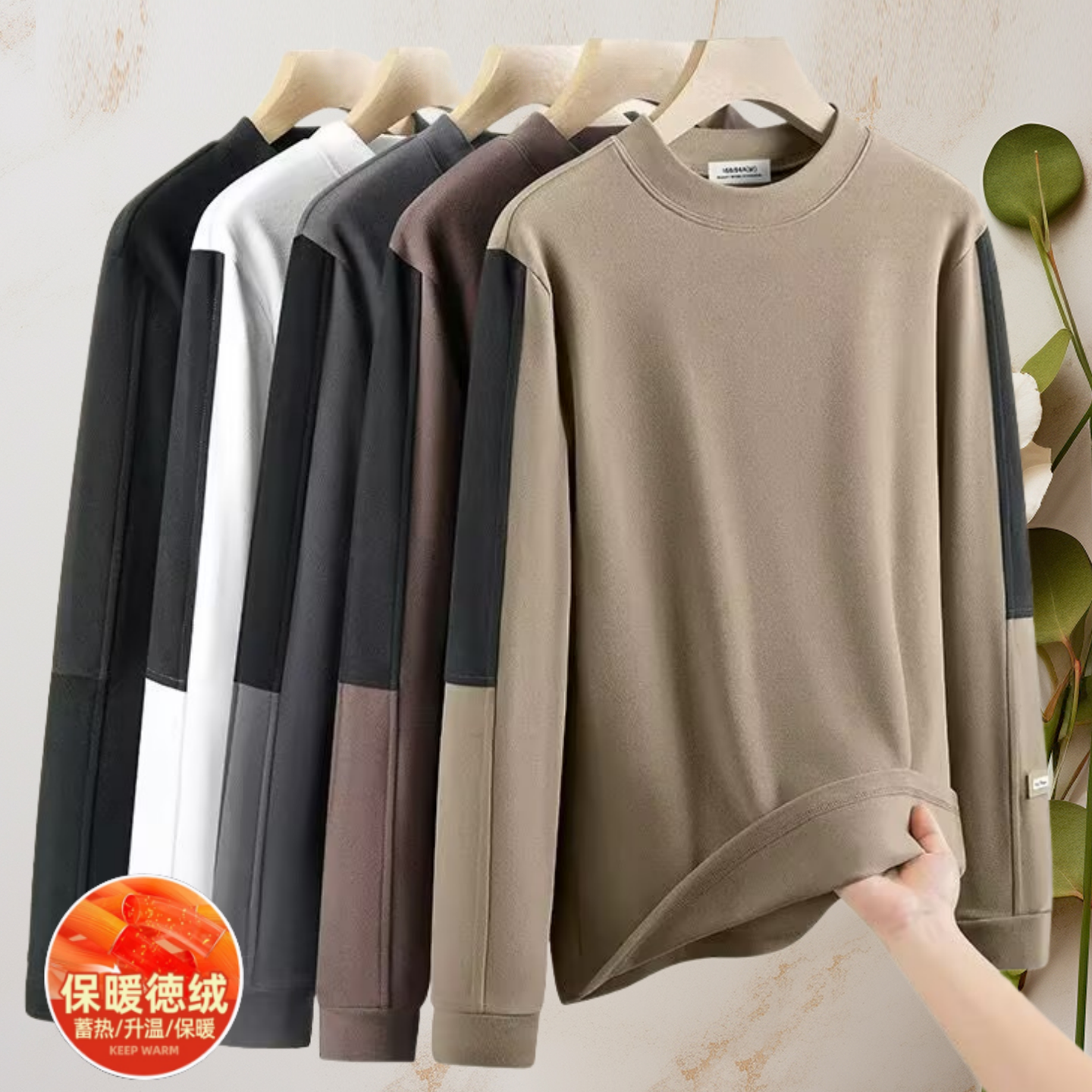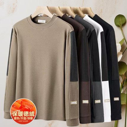 半高领双面德绒打底衫男秋冬纯色中领内搭拼色加厚保暖衣长袖t恤