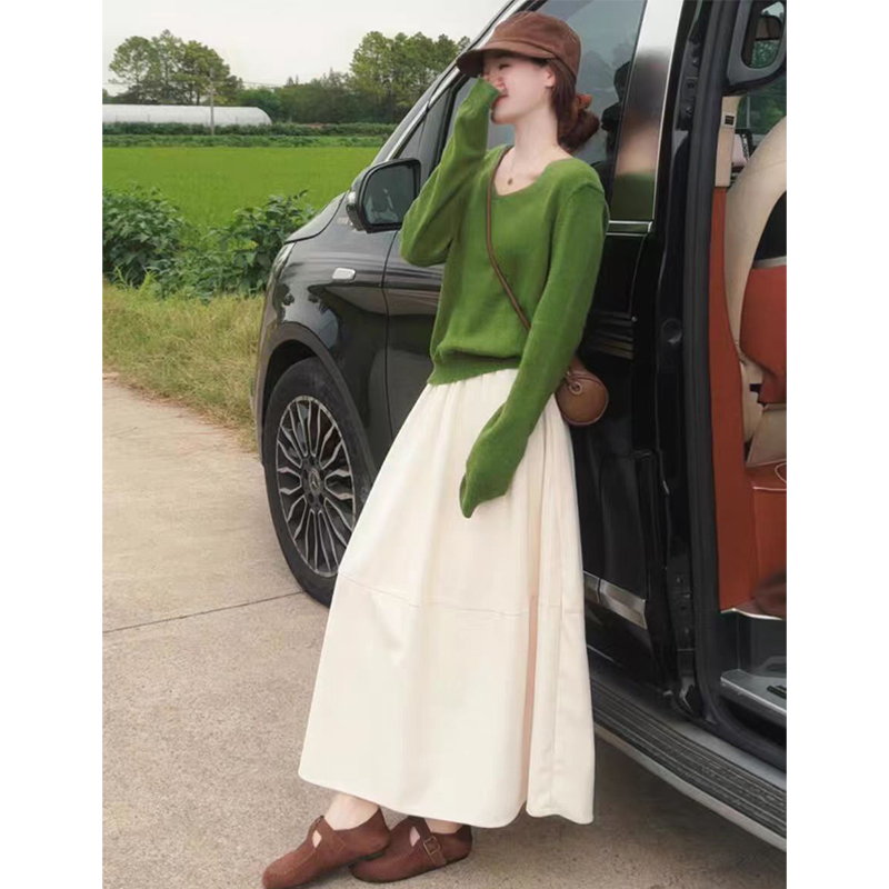 孕妇连衣裙绿色套装秋冬2025新款时尚洋气针织毛衣半身裙两件套女