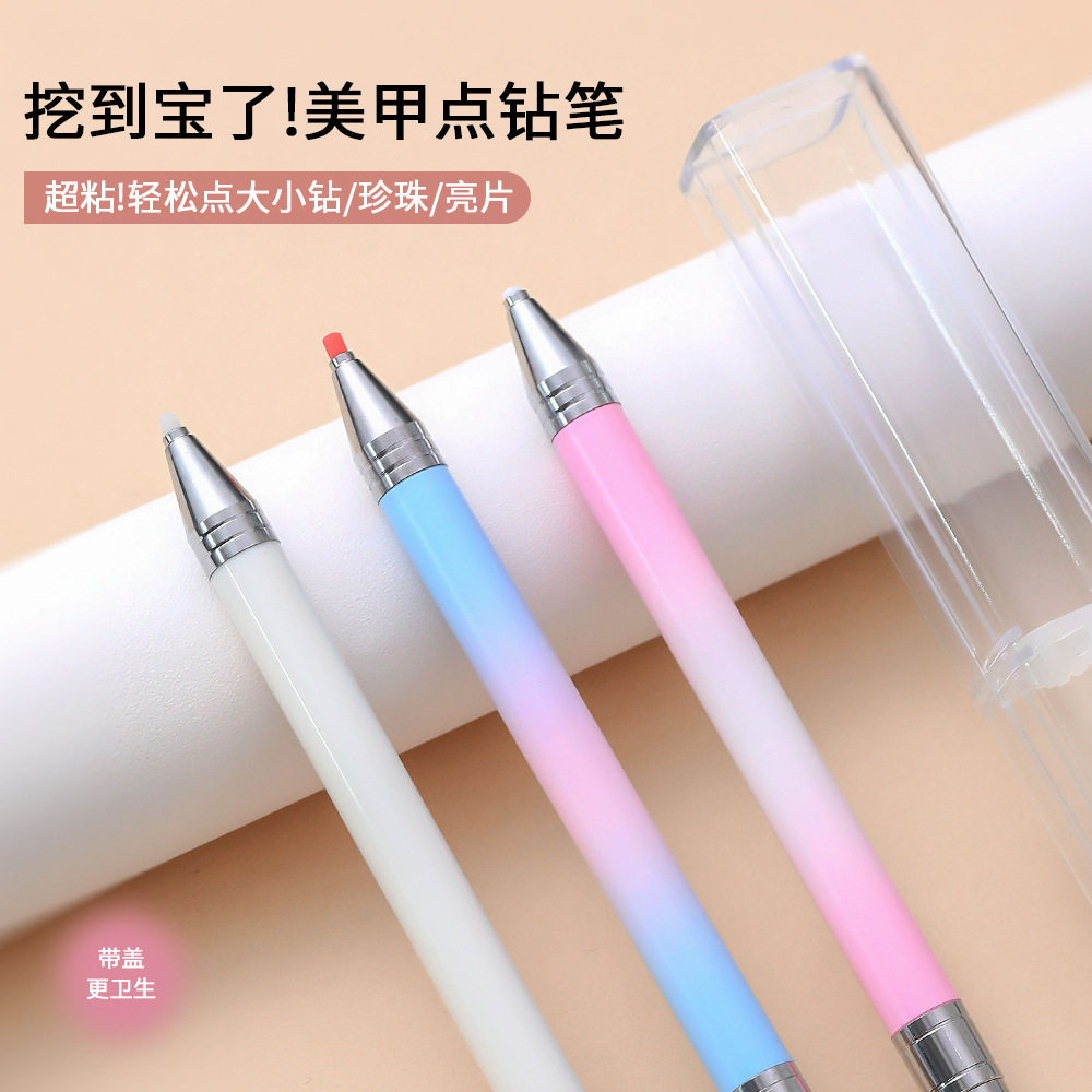 新款美甲点钻笔旋转式推压粘钻蜡笔指甲镶钻石饰品点珠笔吸钻工具