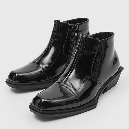 切尔西靴男款尖头高帮马丁靴漆皮英伦中帮皮鞋厚底增高拉链短靴女