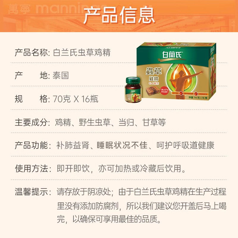 泰国原装白兰氏虫草鸡精补充营养