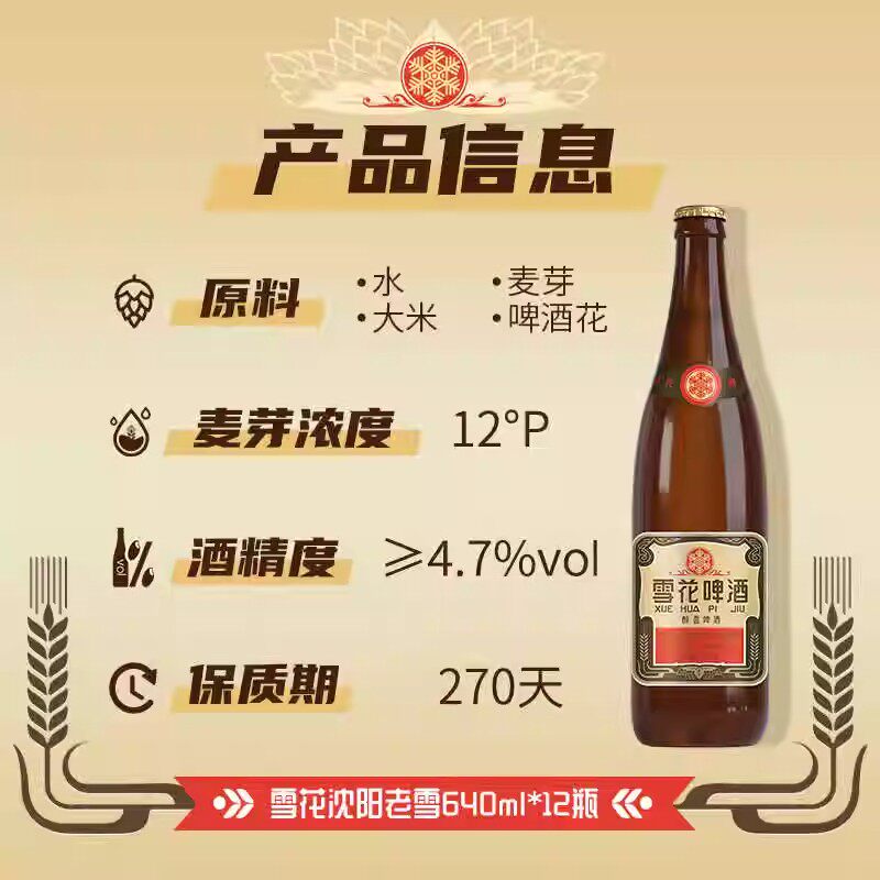 经典浓色醇香啤酒沈阳老雪花醇厚玻璃瓶640mlx6瓶【泡沫箱发货】