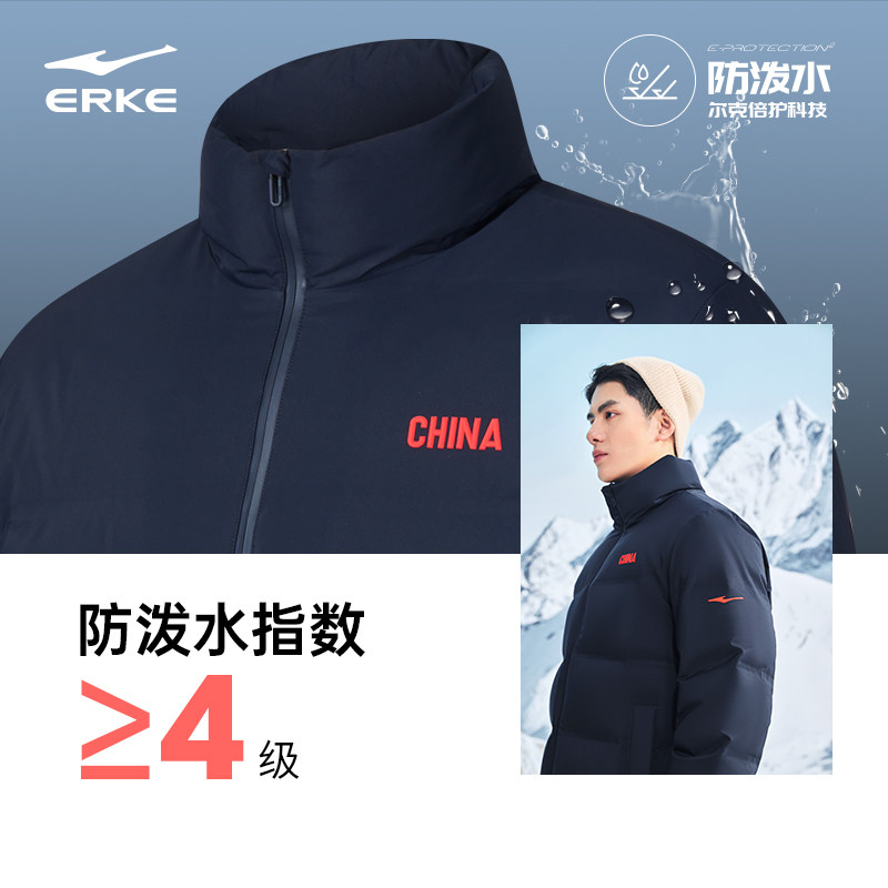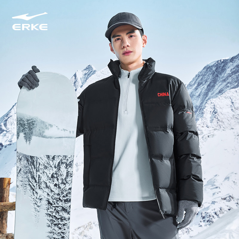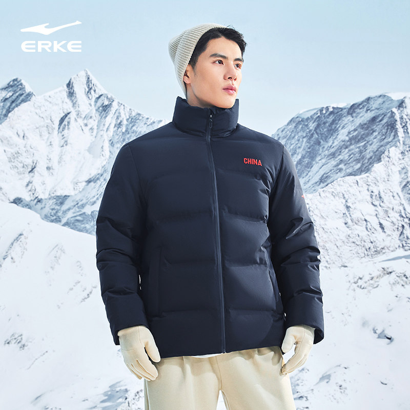 鸿星尔克中国羽绒服男2025冬季新款男士立领保暖夹克运动羽绒外套