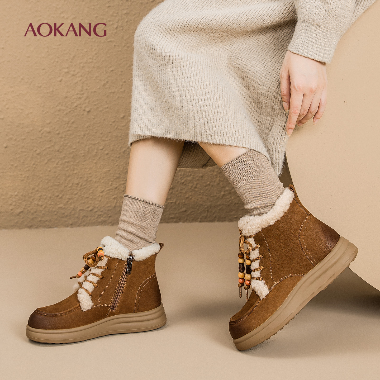 奥康 女鞋2025冬季新款加绒保暖雪地靴厚底防滑百搭棉鞋N