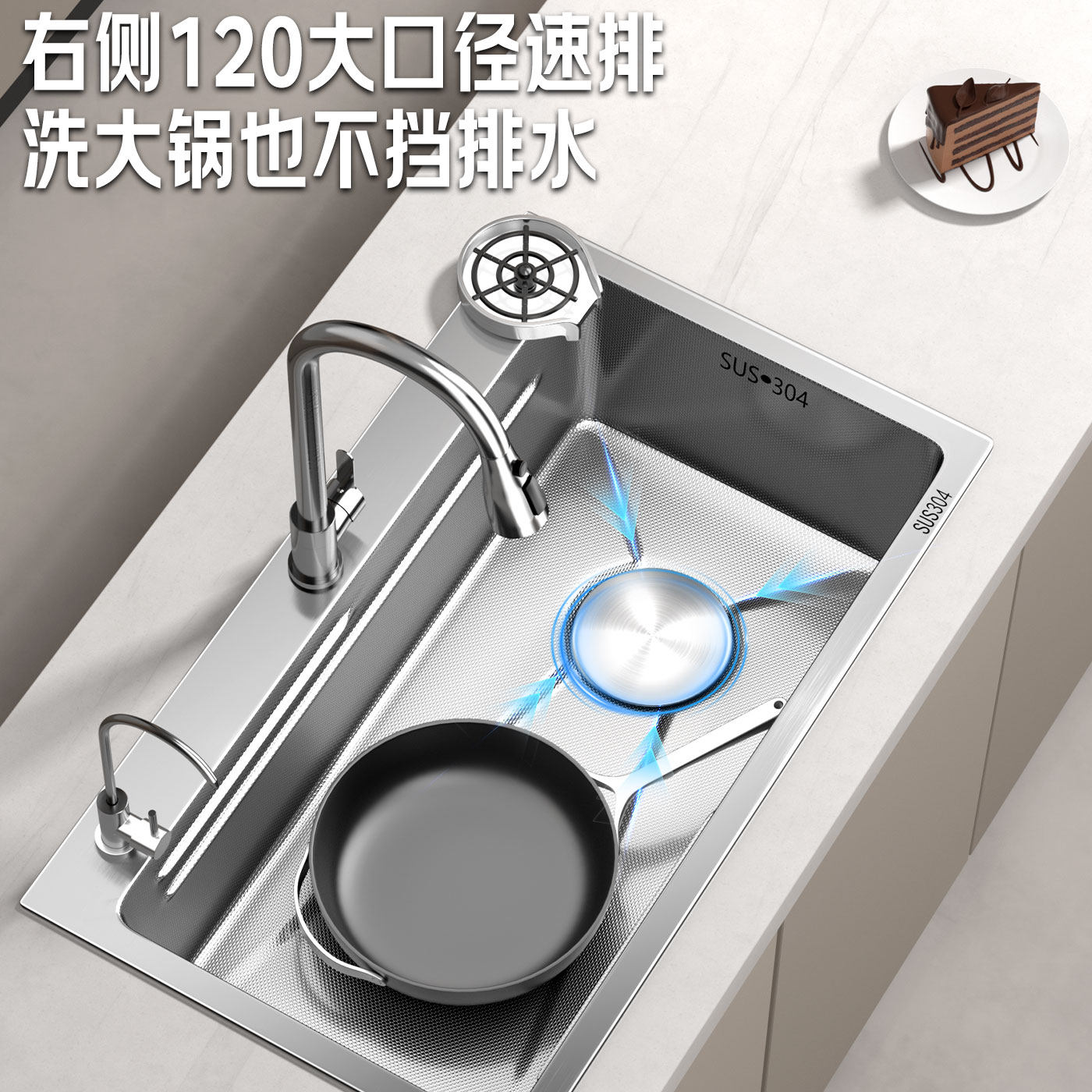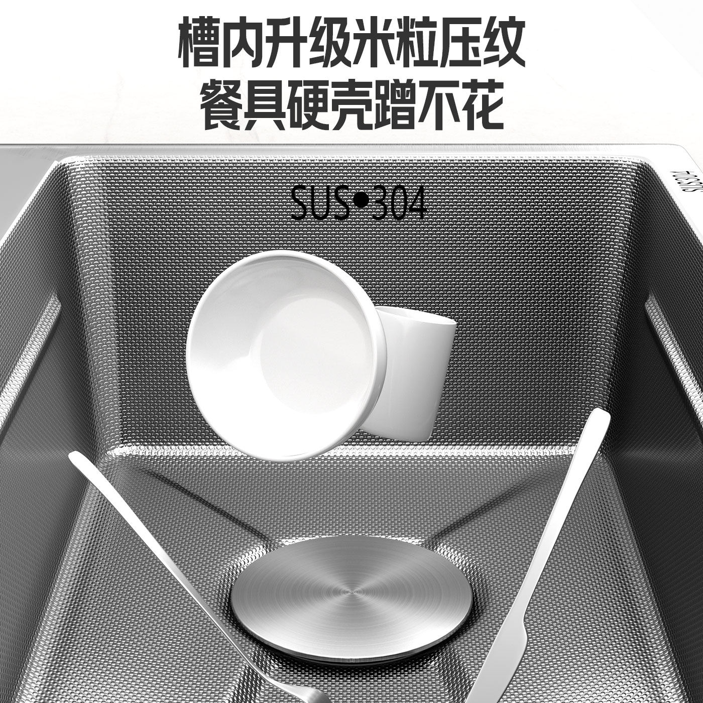 厨房水槽SUS304不锈钢大单槽加厚米粒压纹洗菜盆水池多功能台下盆