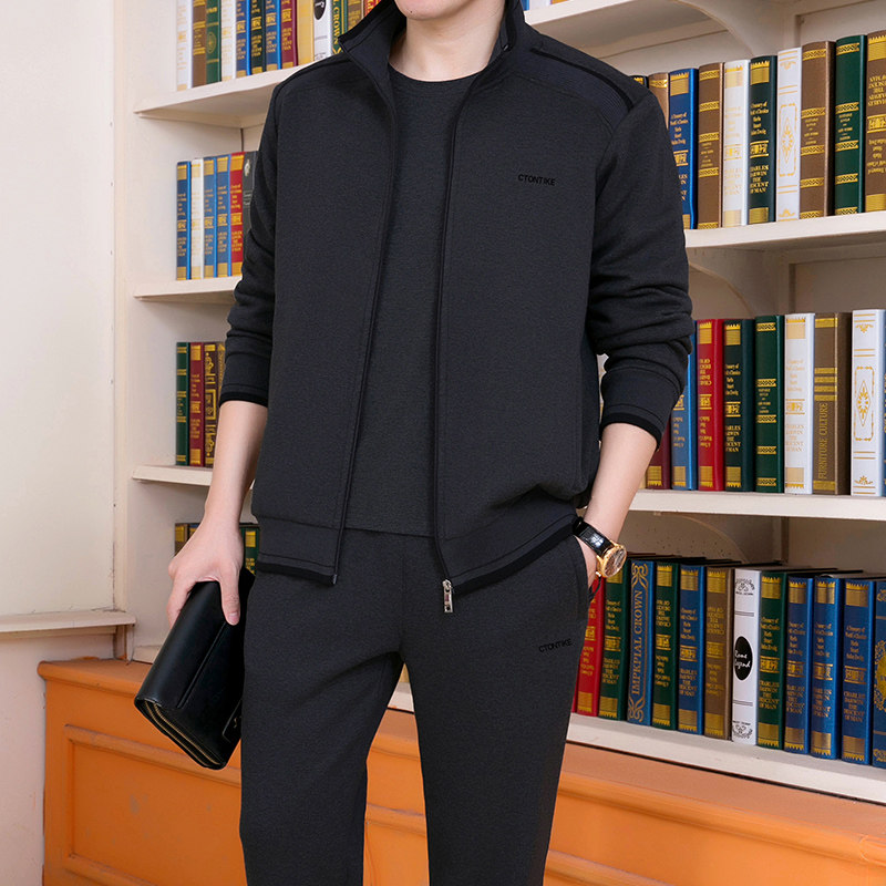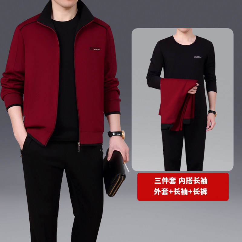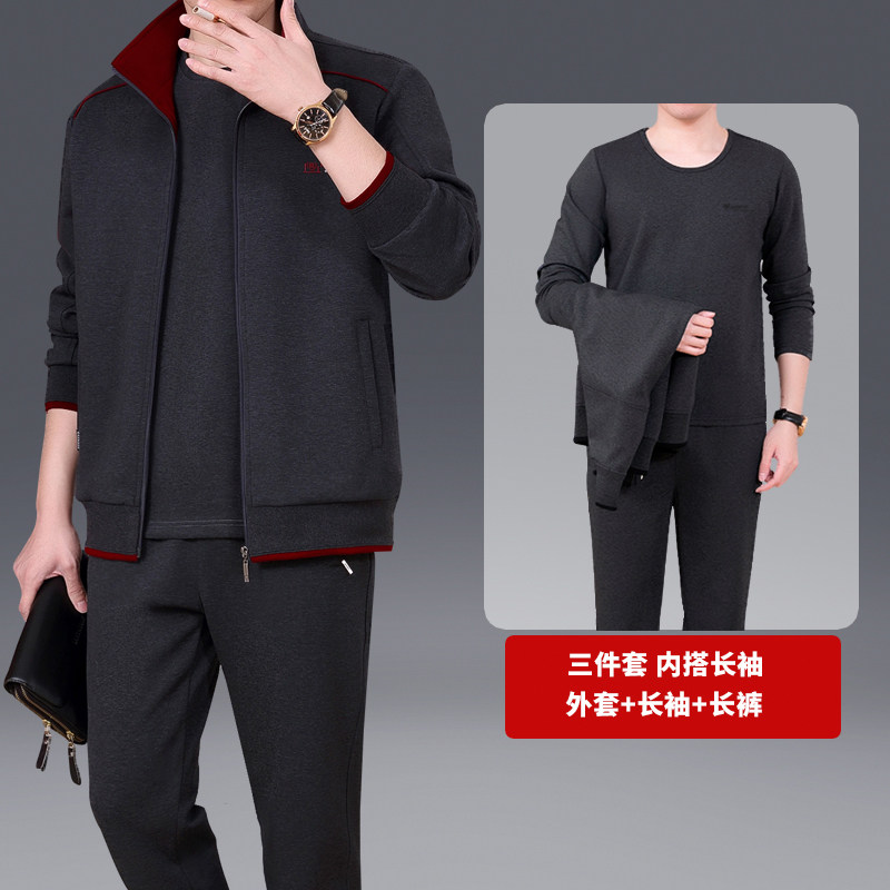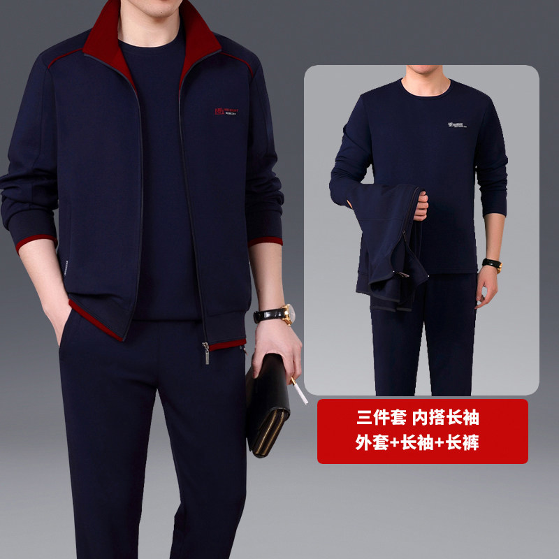 中老年运动套装男春秋卫衣三件套大码爸爸装2025新款休闲运动服棉