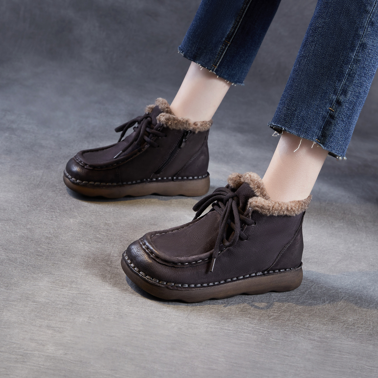 真皮复古棉鞋女冬季加绒加厚短靴雪地靴女鞋2025秋冬妈妈保暖鞋子