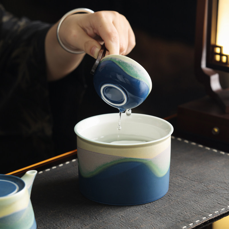 山海窑变小茶洗小号杯洗笔洗家用高颜值陶瓷水盂茶道建水功夫茶具
