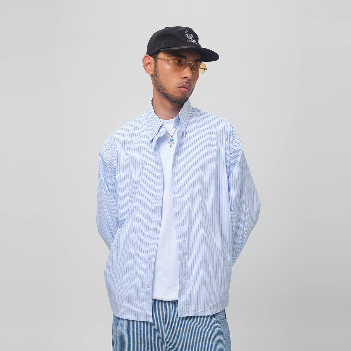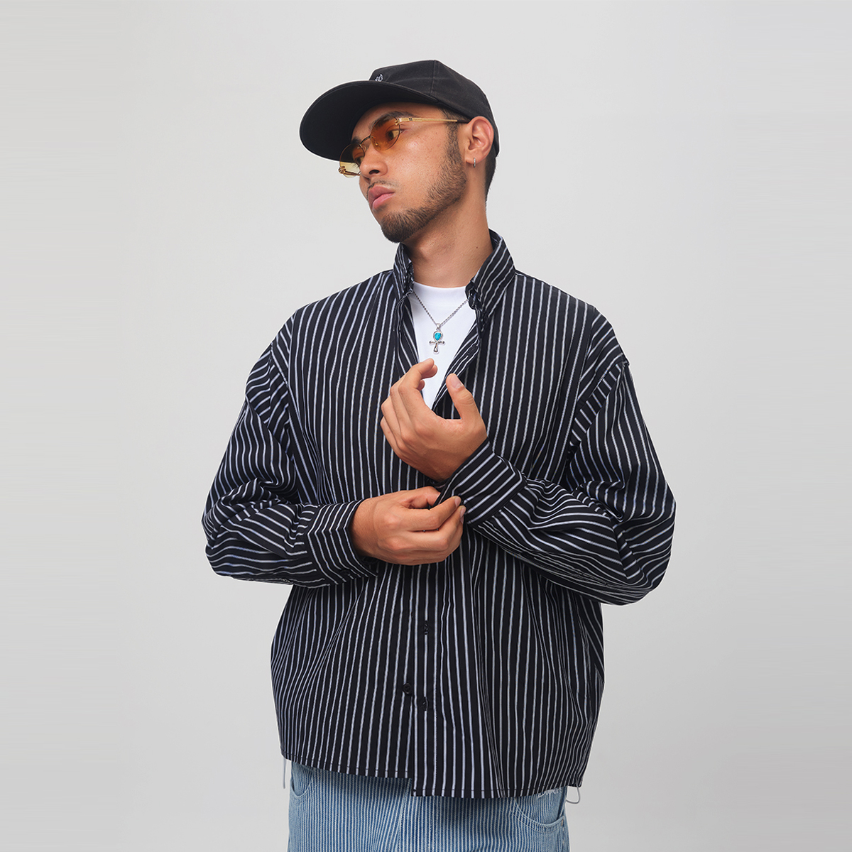 ComicTree C.t 2025秋季基础长袖条纹衬衣男士新款黑色衬衫休闲