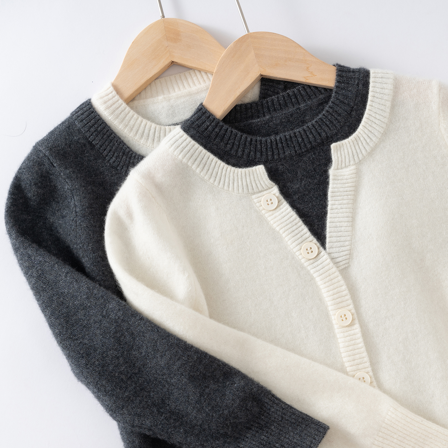 儿童圆领假两件V领100%纯羊绒衫男童中大童秋冬新款针织打底毛衣