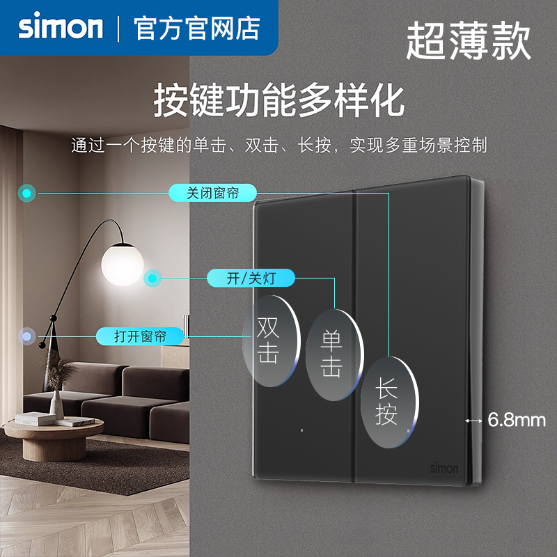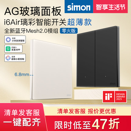 西蒙智能开关i6air璃彩已接入米家APP蓝牙Mesh2.0钢化玻璃面板