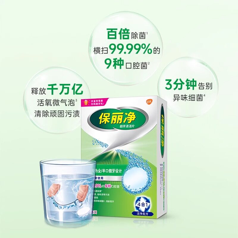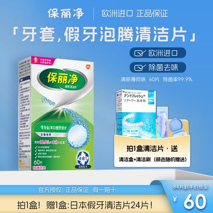 保丽净60片假牙清洁片宝丽保利净假牙清洗全半口老年人假牙泡腾片