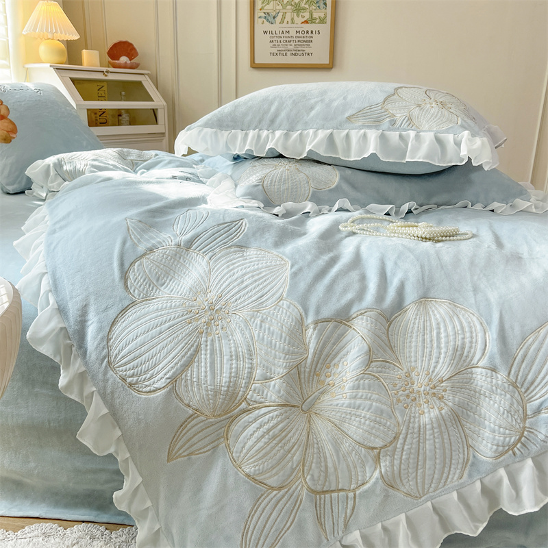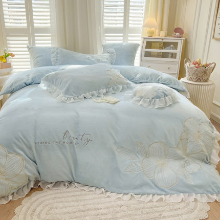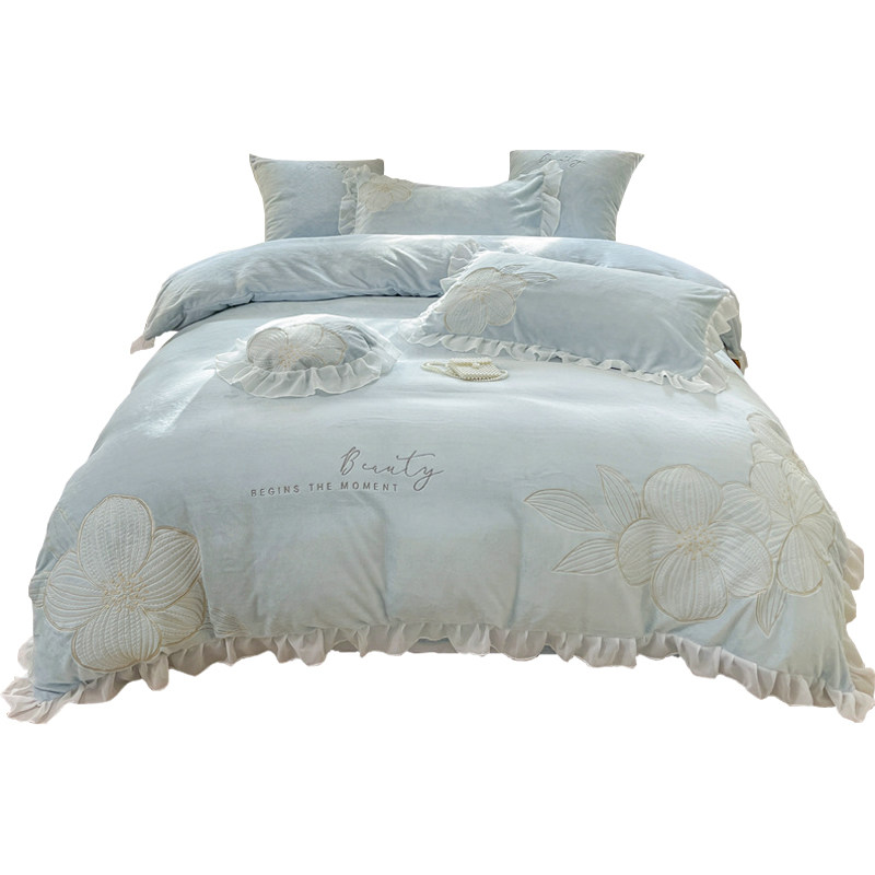 公主风加厚保暖牛奶绒刺绣四件套