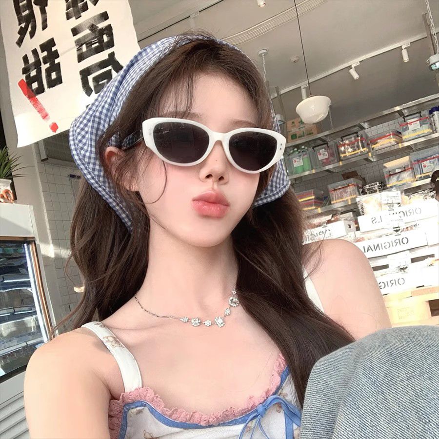 ins小红书同款白色猫眼墨镜女高级感复古辣妹防紫外线太阳眼镜潮