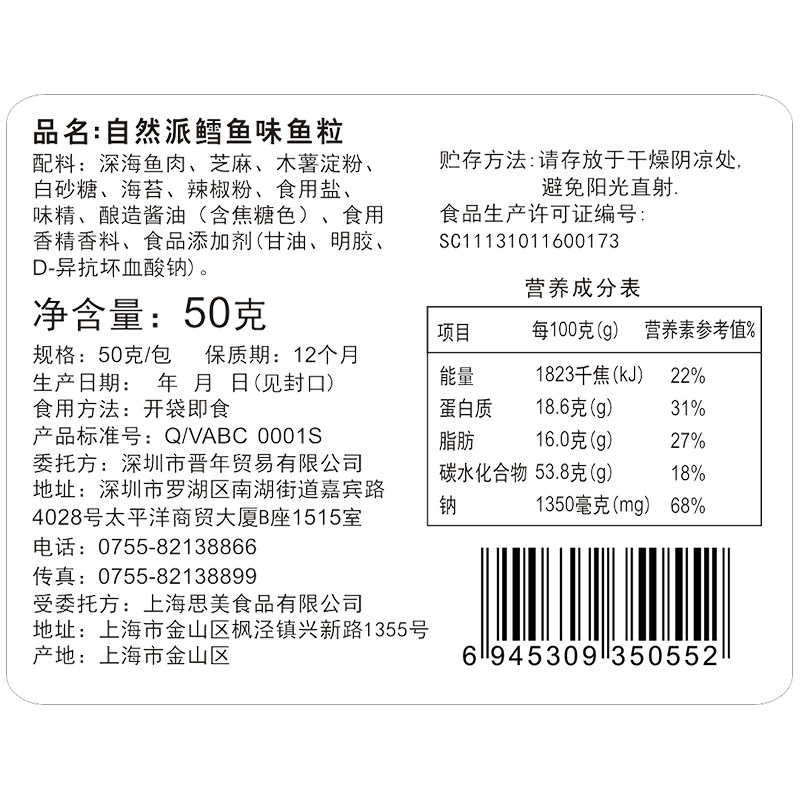 自然派鳕鱼粒50gx3袋儿童小零食