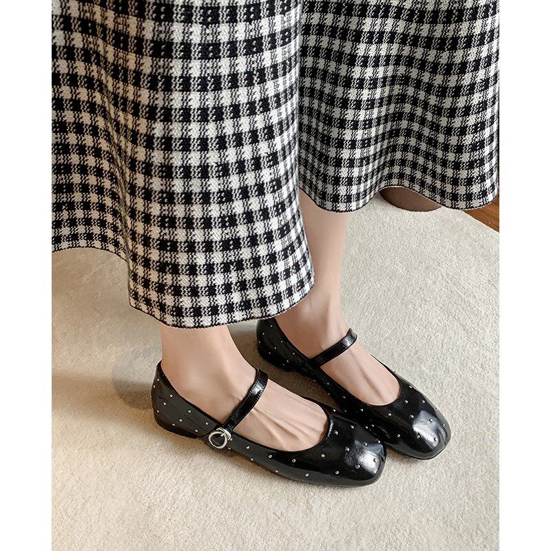 森林舞会2026春季新款气质平底圆头铆钉玛丽珍鞋女方头浅口单鞋