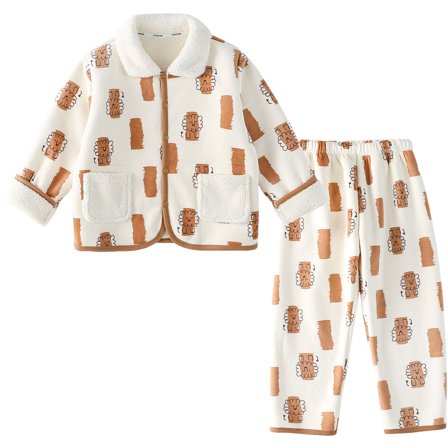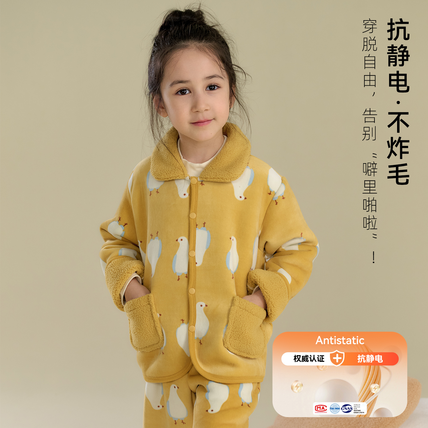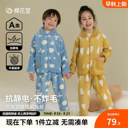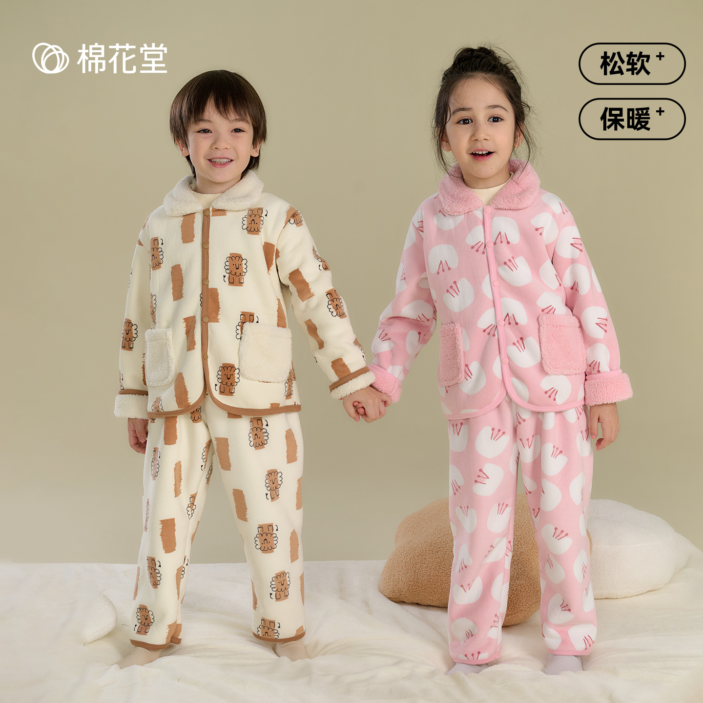 【抗静电】棉花堂儿童珊瑚绒睡衣秋冬款加绒男孩女孩家居服套装