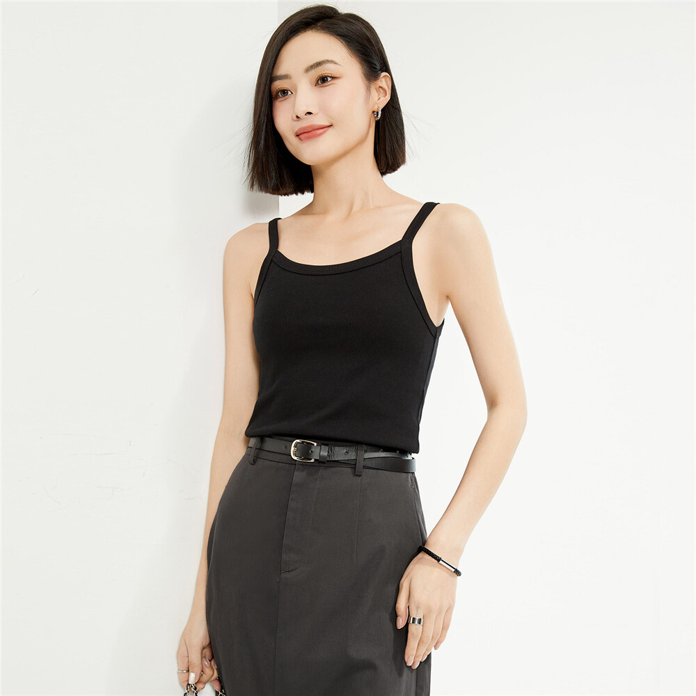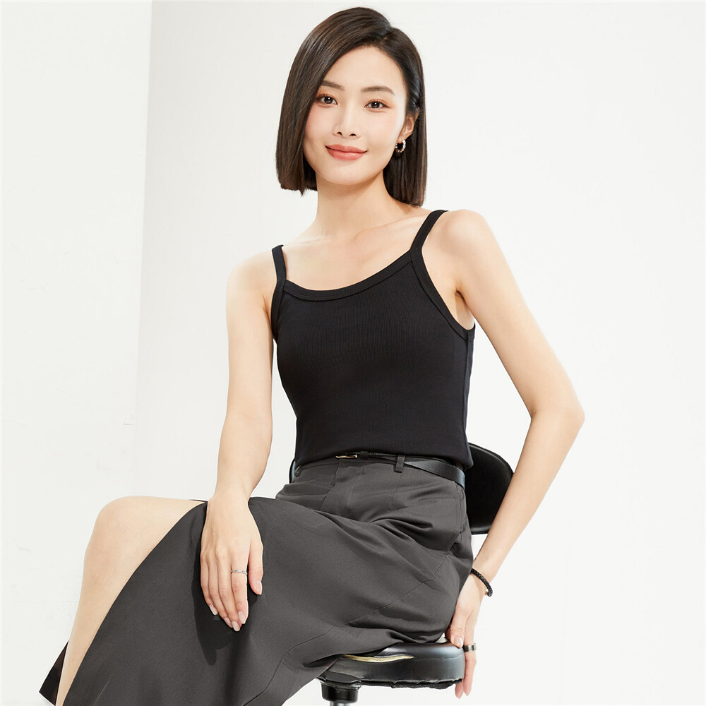 佐丹奴T恤女装纯色坑条针织修身圆领吊带背心 13323210