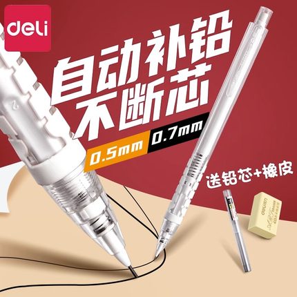 得力自动铅笔小学生专用不断芯0.7自动笔矫正握姿0.5按动笔铅芯男生女生高颜值自动出铅活动免削铅笔低重心