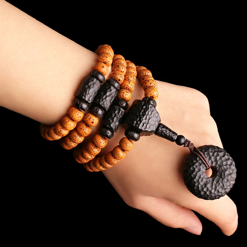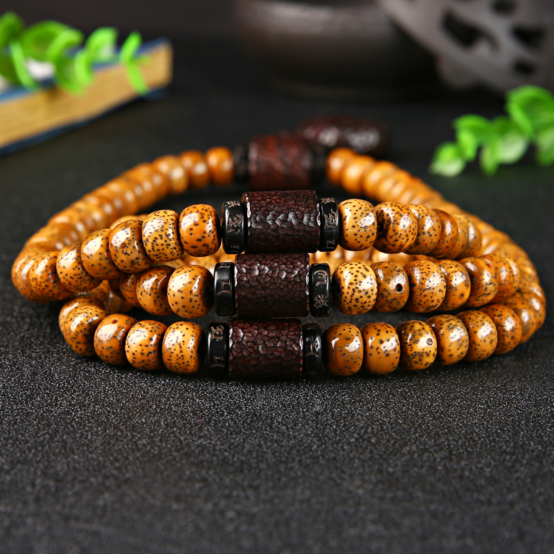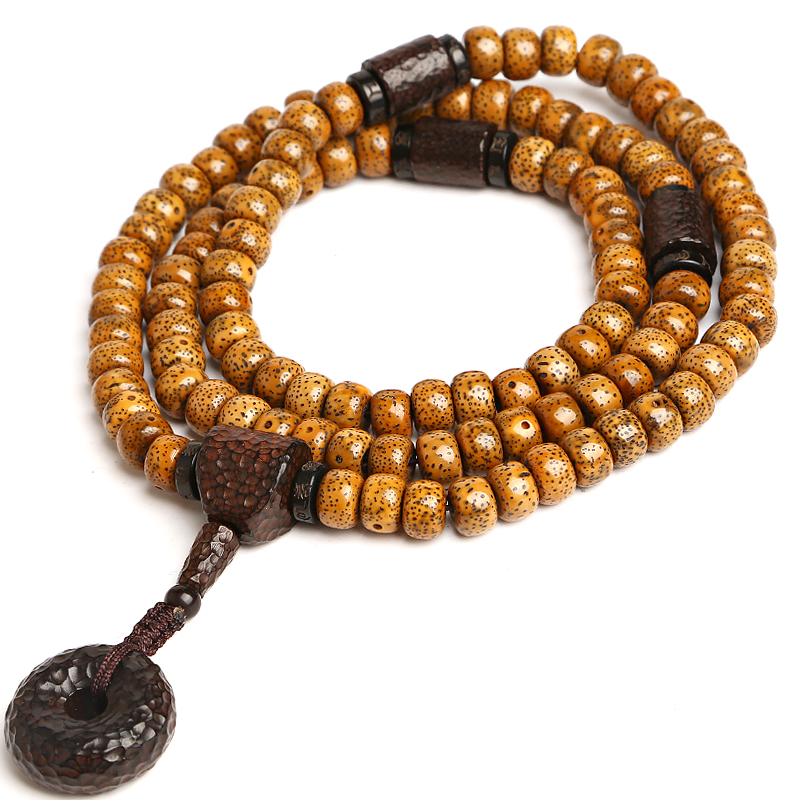 西藏星月菩提子手串108颗正老陈籽男佛珠配饰包浆开片手链盘捻女