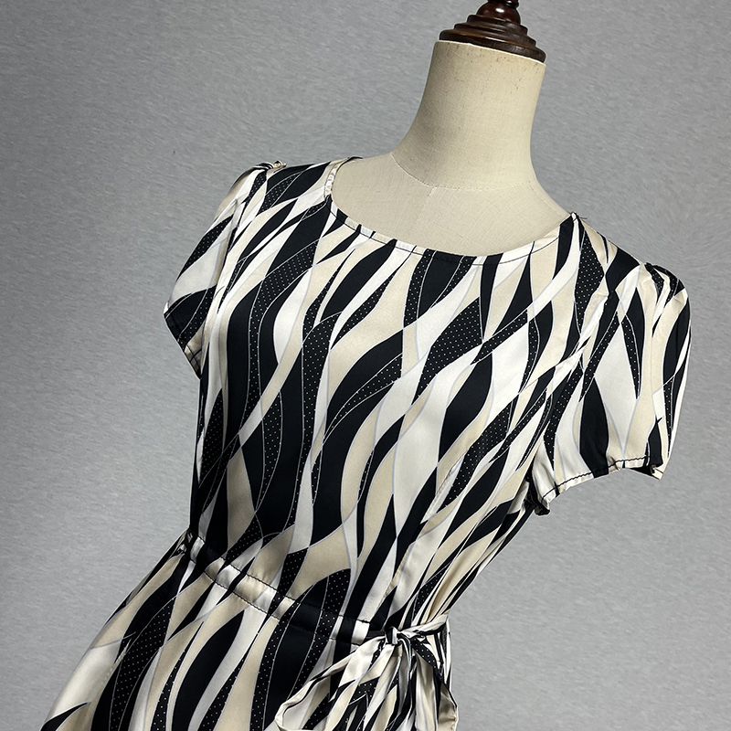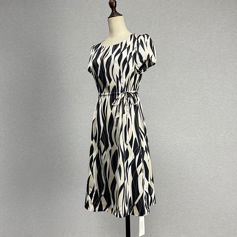 品牌折扣中长款黑色条纹连衣裙女2024夏性感显瘦系带收腰a字裙薄